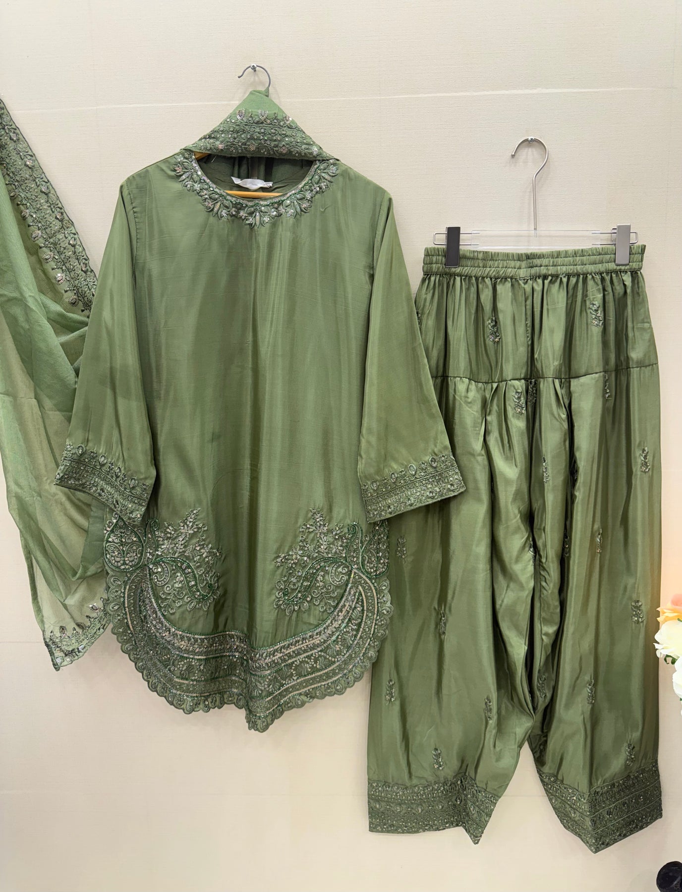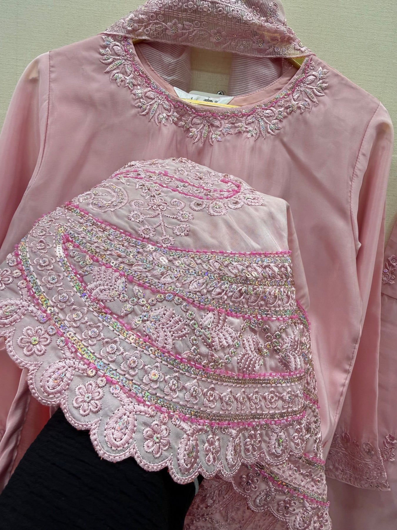 Dupatta:-organza dupatta with sequence embroidery work