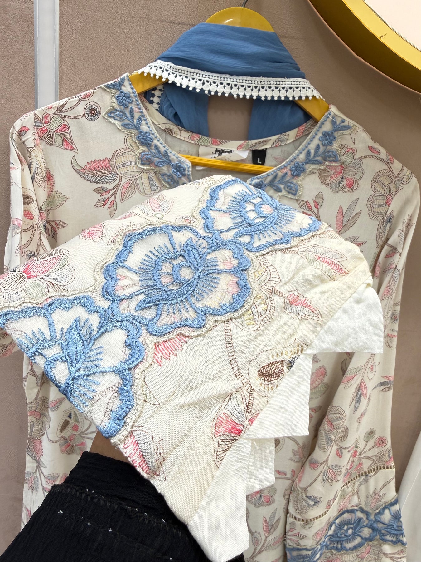 Top:-Maslin kurti with embroidery & cutwork