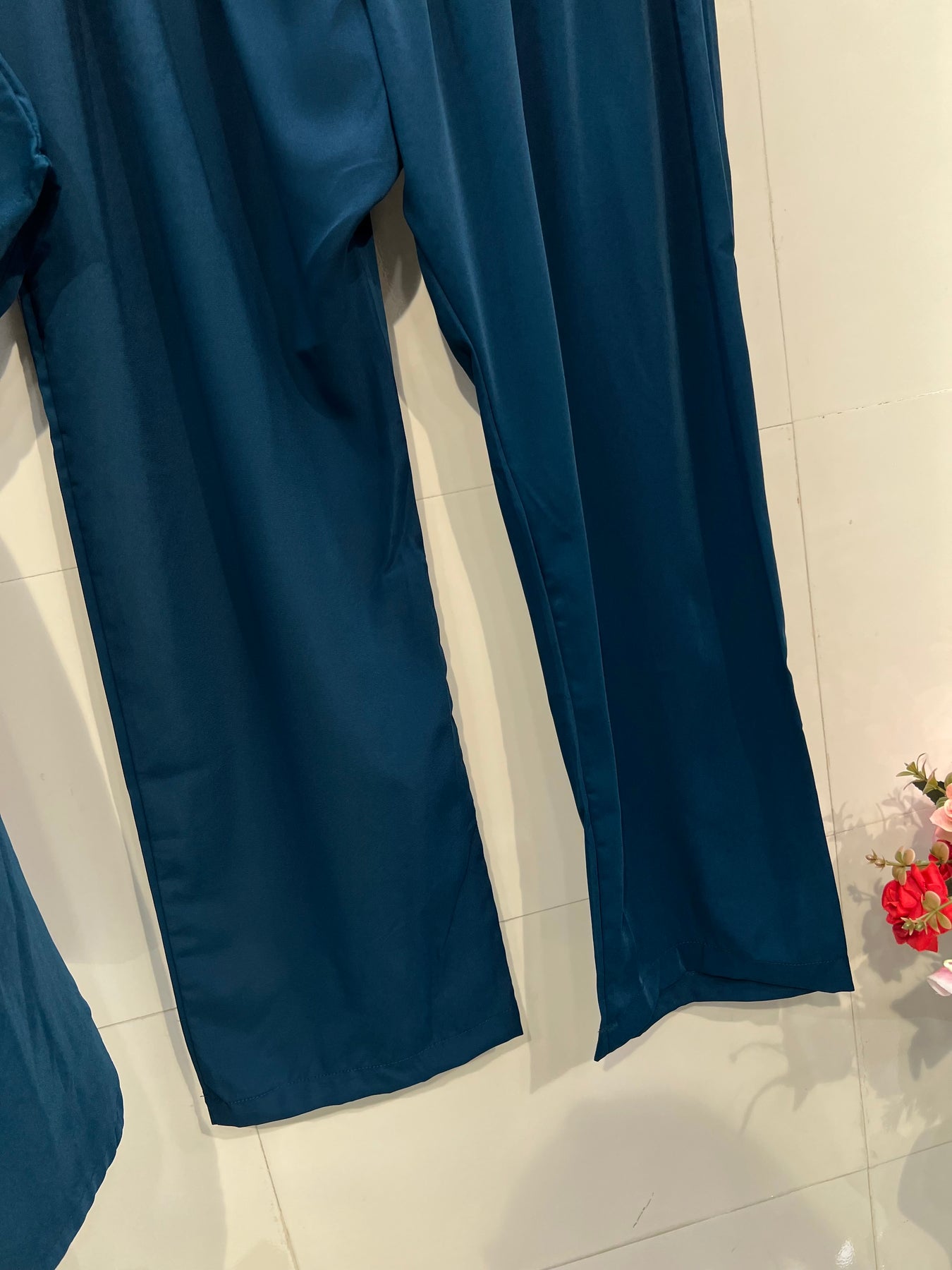 D.no:-2294. Elevate your wardrobe with our imported kaftan top featuring a delicate brooch. Made with high-quality materials, this co-ord set provides a touch of elegance to any outfit. Perfect for any occasion, this versatile piece is a must-have for any fashion-forward individual.