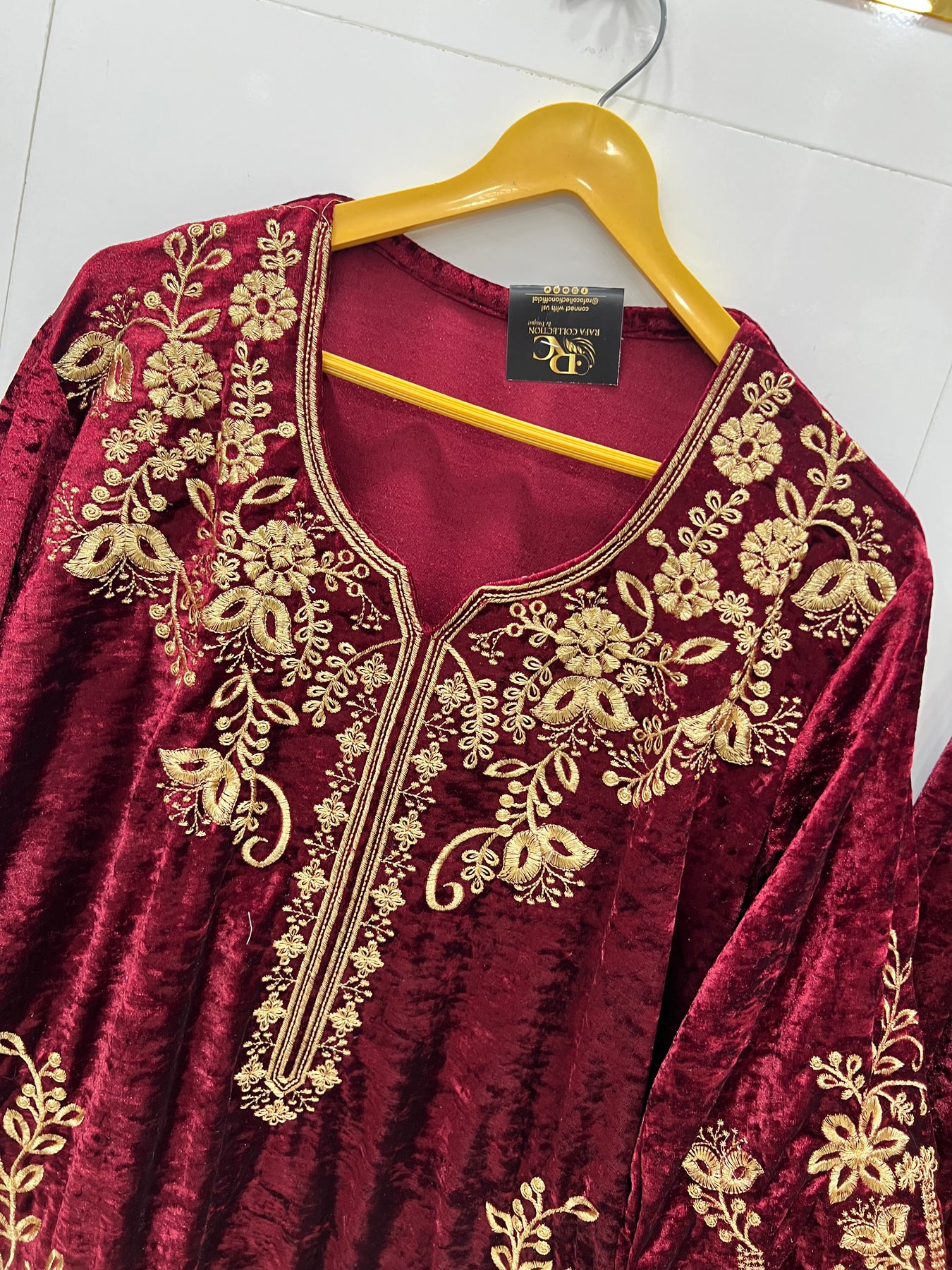 Top :- velvet top with thread embroidery work