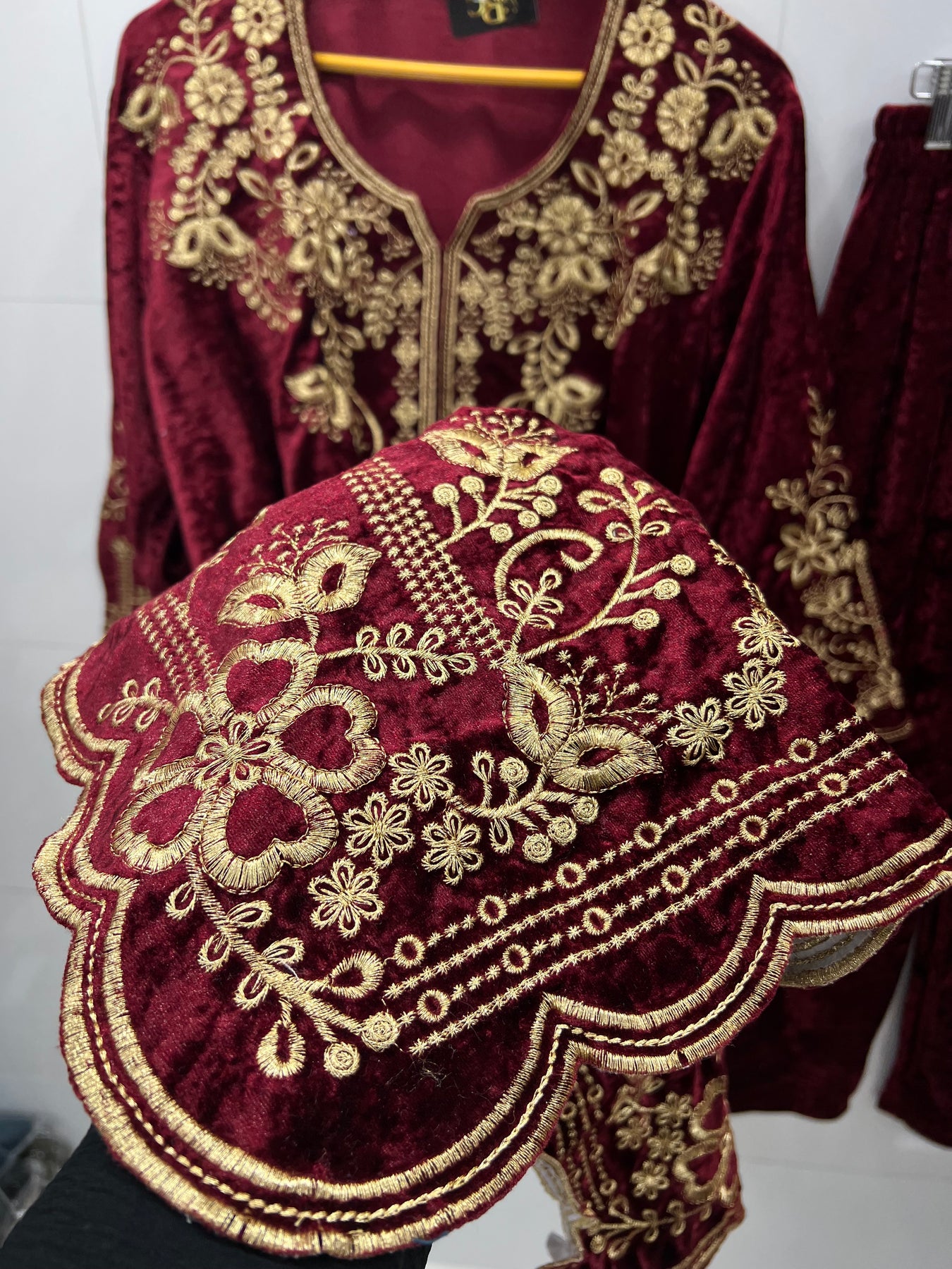 D no 2834 :- Experience luxury and elegance with our Velvet Co-ord Sets . Made from high-quality velvet and adorned with delicate thread embroidery work, these sets combine comfort and style perfectly. Elevate your fashion game with our versatile and trendy co-ord sets.