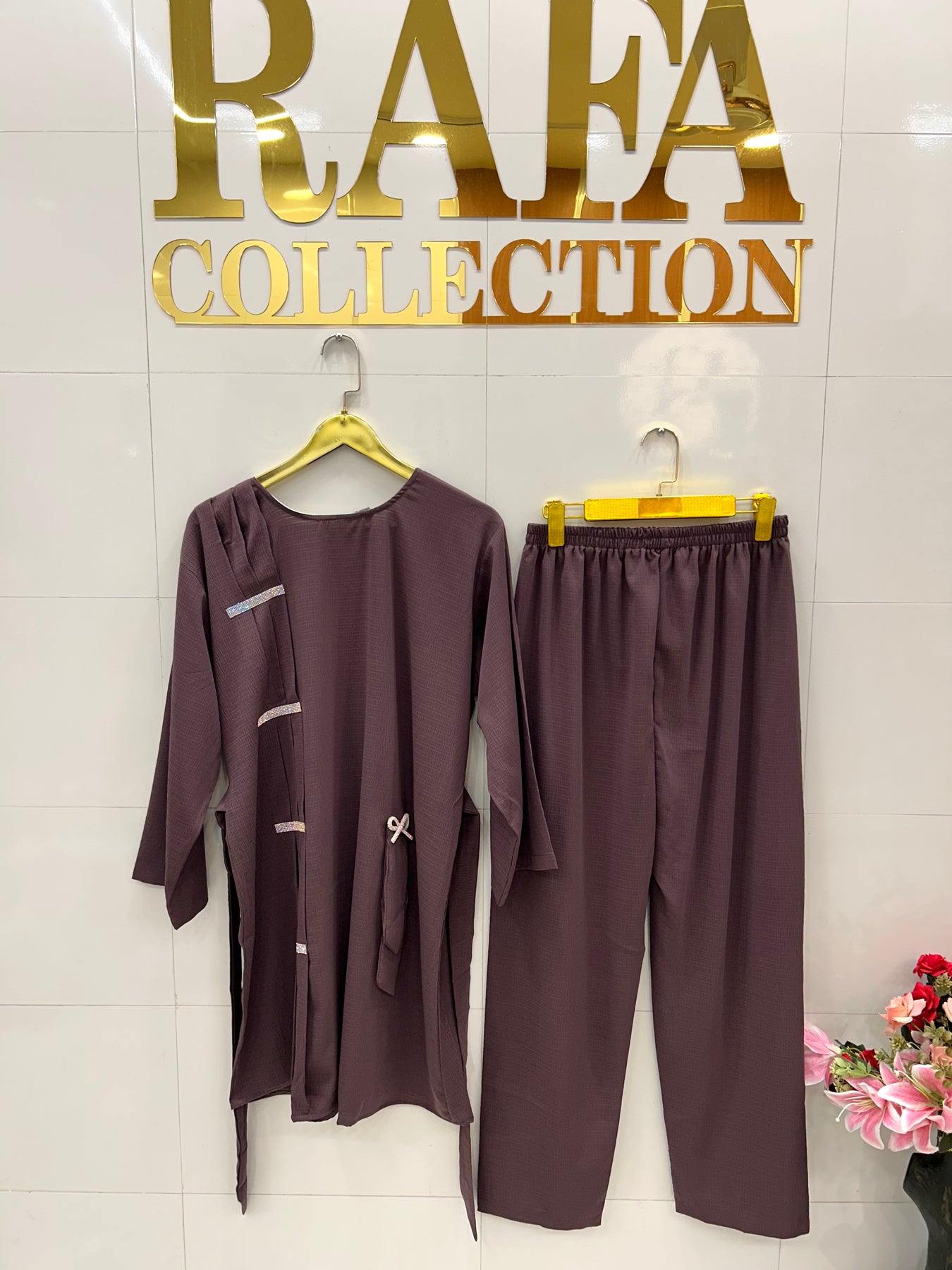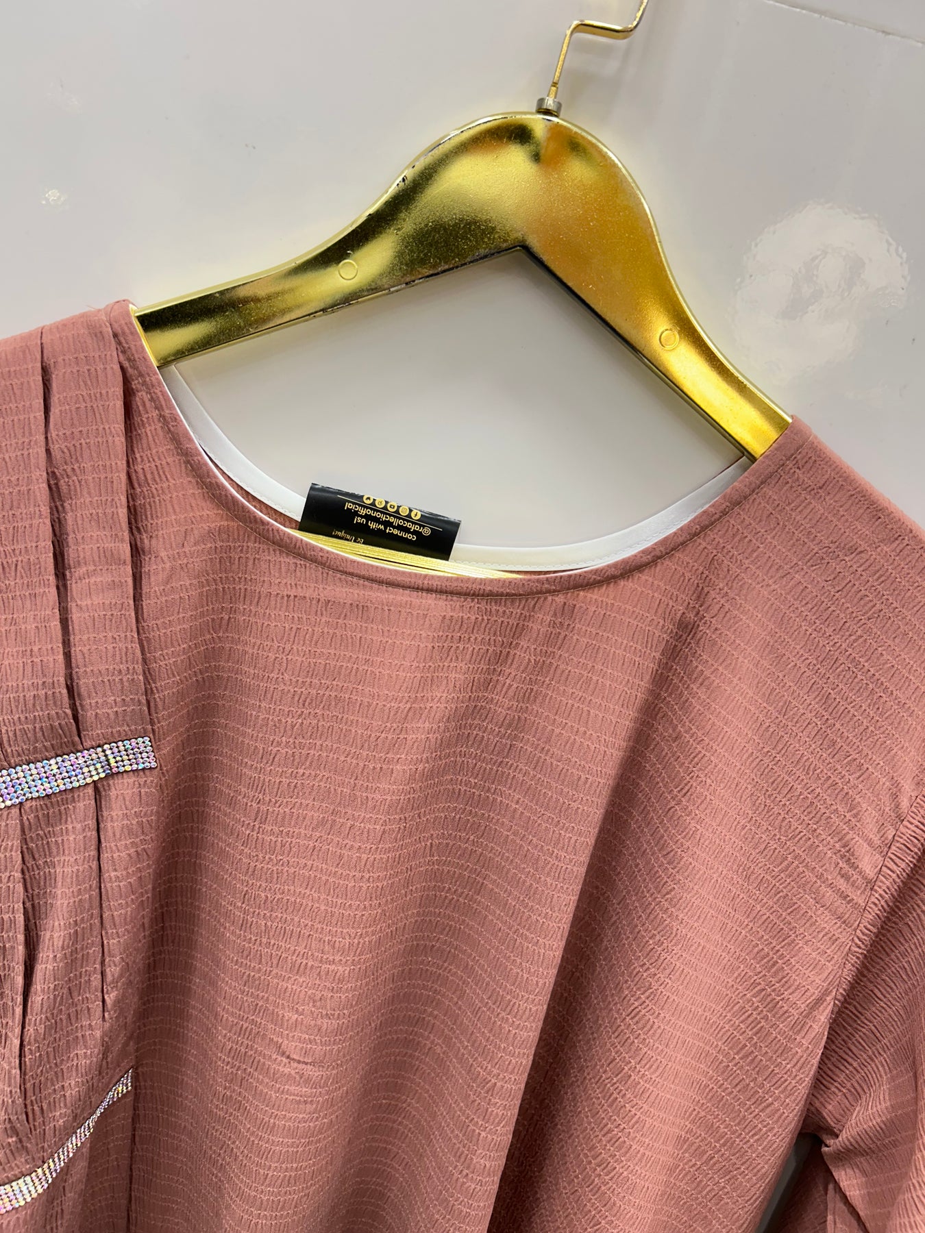 D No:-3137.Introducing our stylish imported co-ord sets 3137, featuring a beautiful crinkle top adorned with stone work. Made with high-quality materials, this fashion-forward set is perfect for adding some flair to your wardrobe. Elevate your style with our imported co-ord sets and make a statement wherever you go.