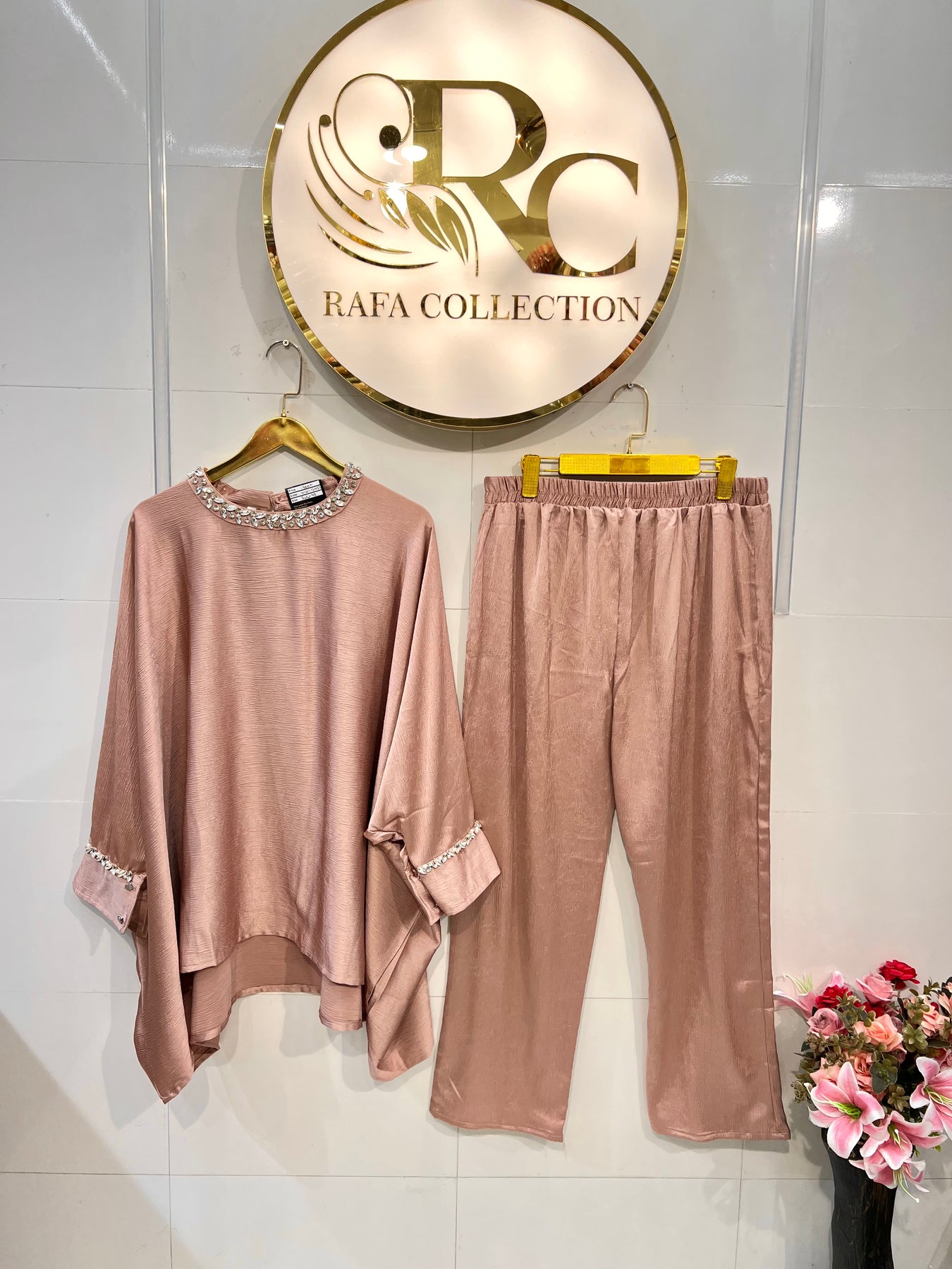 D no :- 12422 Experience the luxurious and unique style of our Kaftan Co-ord Sets. Made with imported crinkle fabric, each top is hand-worked for a one-of-a-kind look. Elevate your wardrobe with these statement pieces.