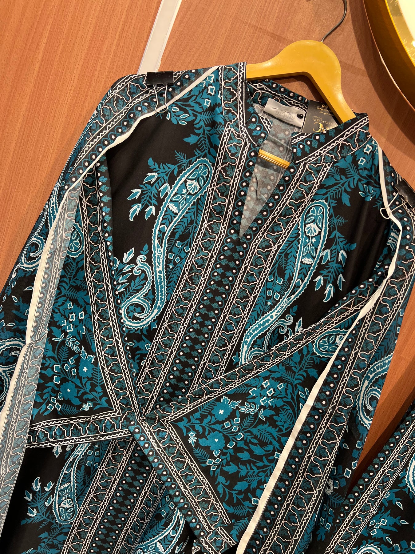 D no :- 2738Expertly crafted from lightweight crepe fabric, this Turkish co-ord set features a stylish printed top with elegant bell sleeves. The soft and flowy material ensures a comfortable fit, while the bold print adds a touch of sophistication. Perfect for any occasion, this set effortlessly combines style and comfort.