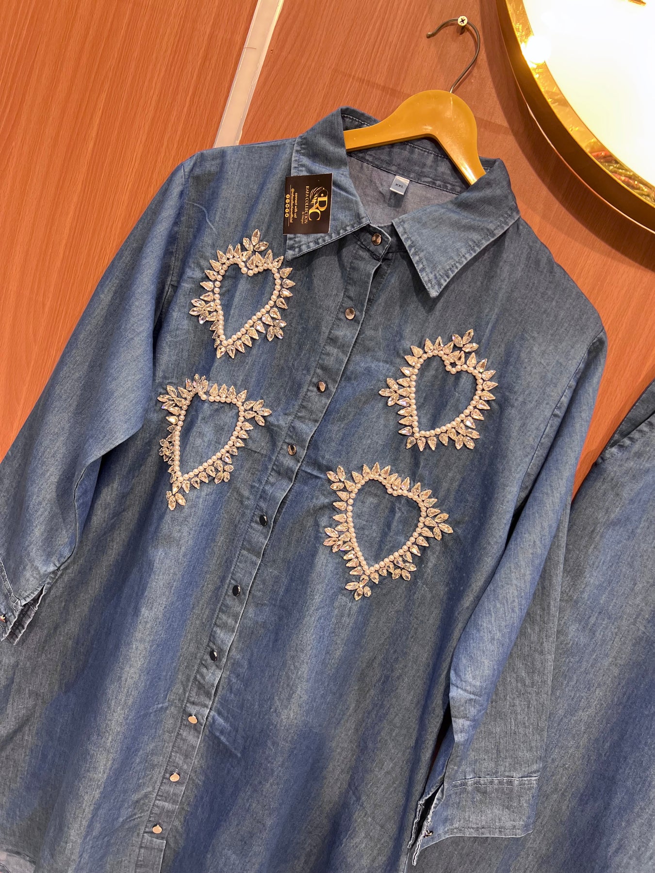 Top :- denim top with handwork up & down top