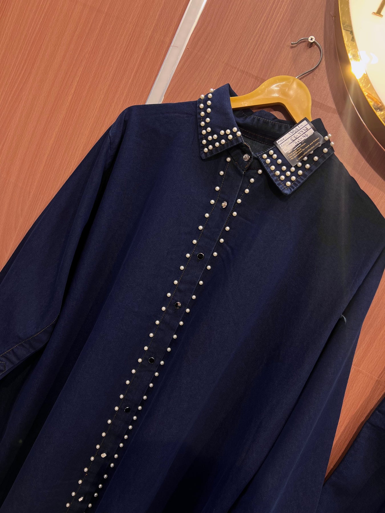 D.no:- .2723 Upgrade your wardrobe with our Denim long Co-ord set. This set features a stylish denim top adorned with pearl work, adding a touch of elegance to your casual look. Crafted with high-quality denim, it offers durability and comfort, perfect for any occasion. Elevate your style game with this versatile set.