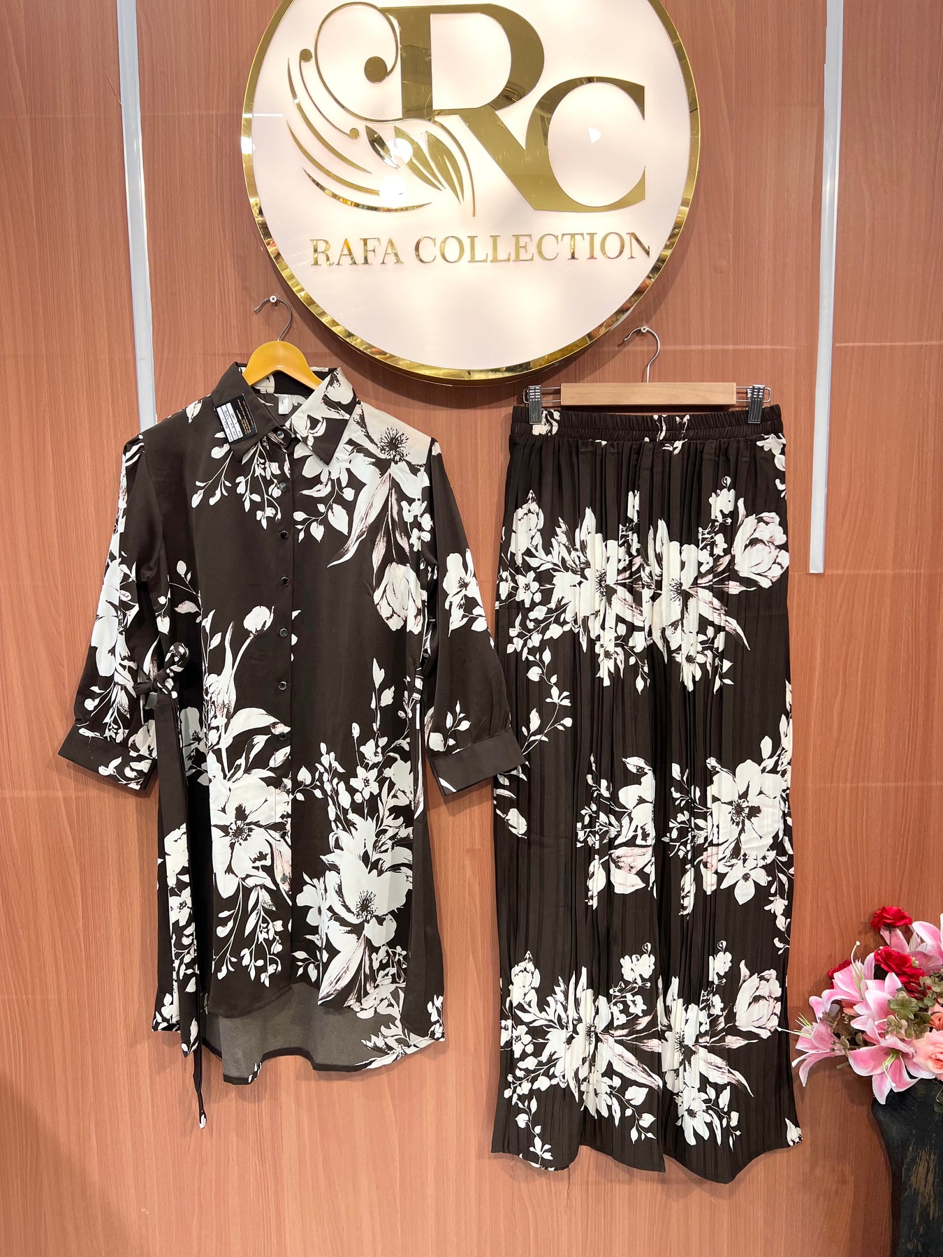 D. no :- 2708  This Imported Co-Ord Set features a printed up and down top with a belt for a perfect fit. Made from high-quality imported materials, this set is both stylish and comfortable, making it the perfect addition to any wardrobe. Elevate your fashion game with this trendy and versatile set.