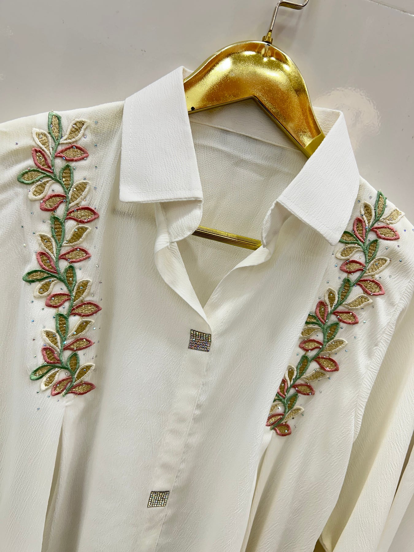 D No:-2861.Expertly crafted with imported crinkle fabric and adorned with delicate embroidery and sparkling stone work, our co-ord sets are a luxurious addition to your wardrobe. Experience the elevated style and quality of our imported pieces.