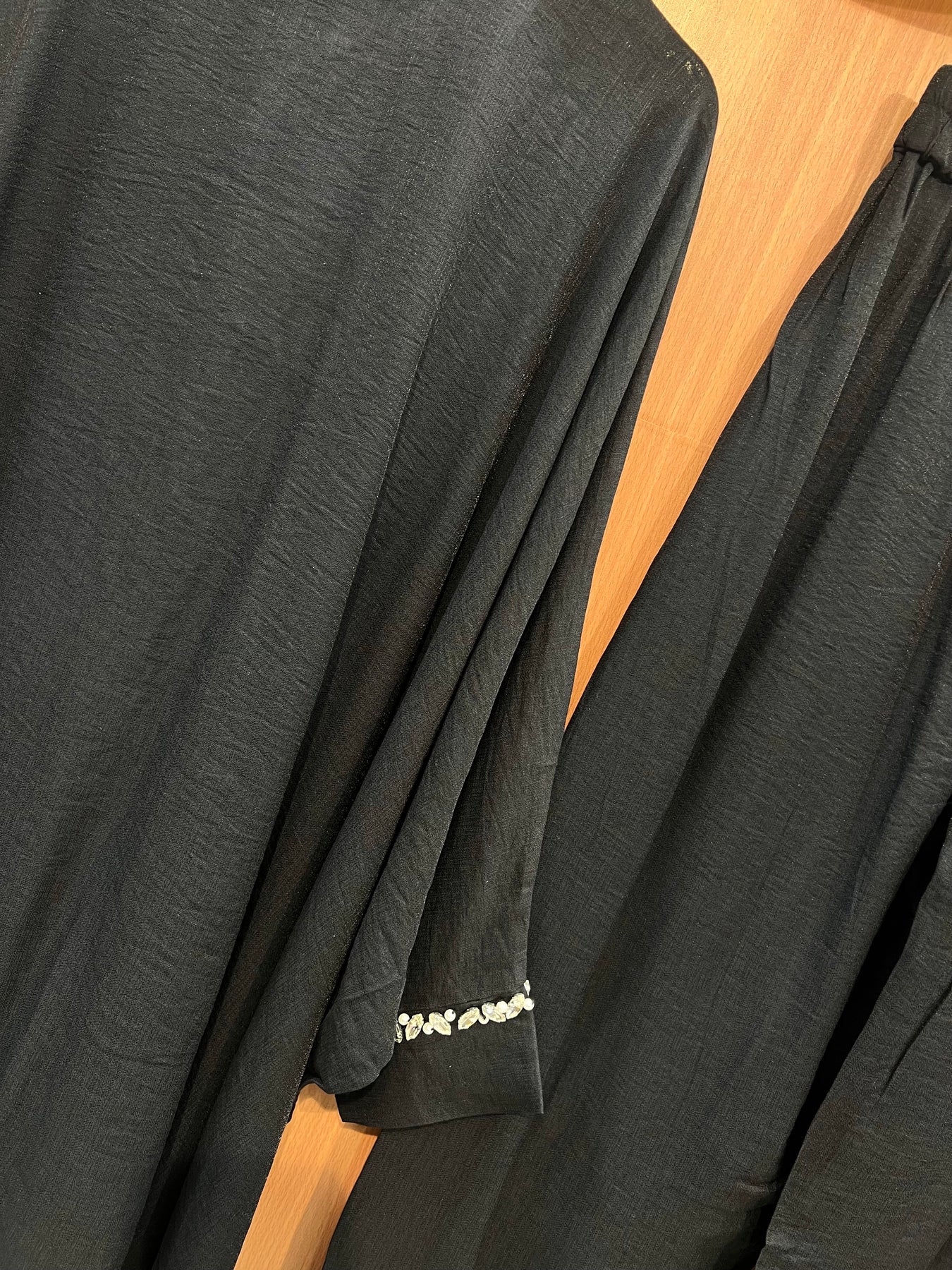 D no :-   12426 "Upgrade your wardrobe with our imported kaftan co-ord set. This set features a stylish polo neck and intricate handwork, perfect for adding a touch of elegance to any outfit. Made with high-quality materials, you'll love the comfort and durability of this top. Elevate your fashion game today!"