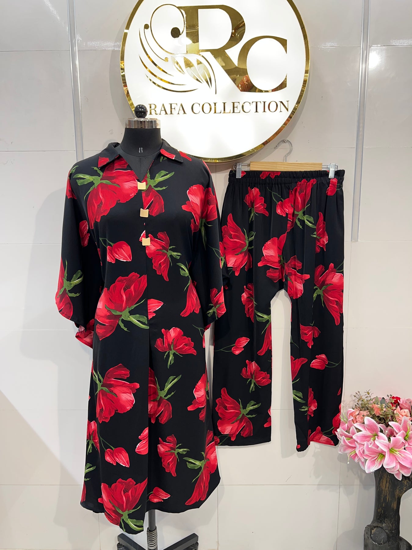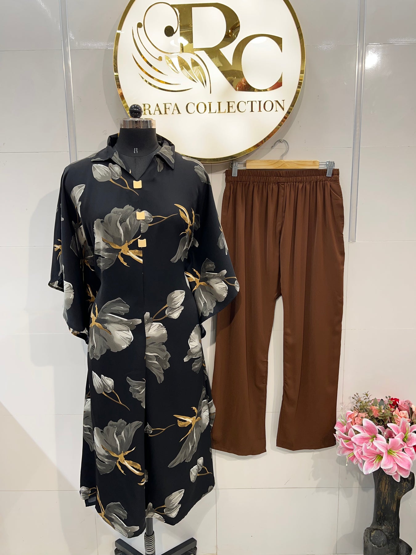 D.no:-2512. This Imported Kaftan Set is the perfect addition to any wardrobe. Made from high-quality imported fabric, it features a long, vibrant print that adds a touch of elegance to any outfit. With its lightweight and flowy design, this kaftan offers both comfort and style, making it a must-have for any fashion-forward individual.