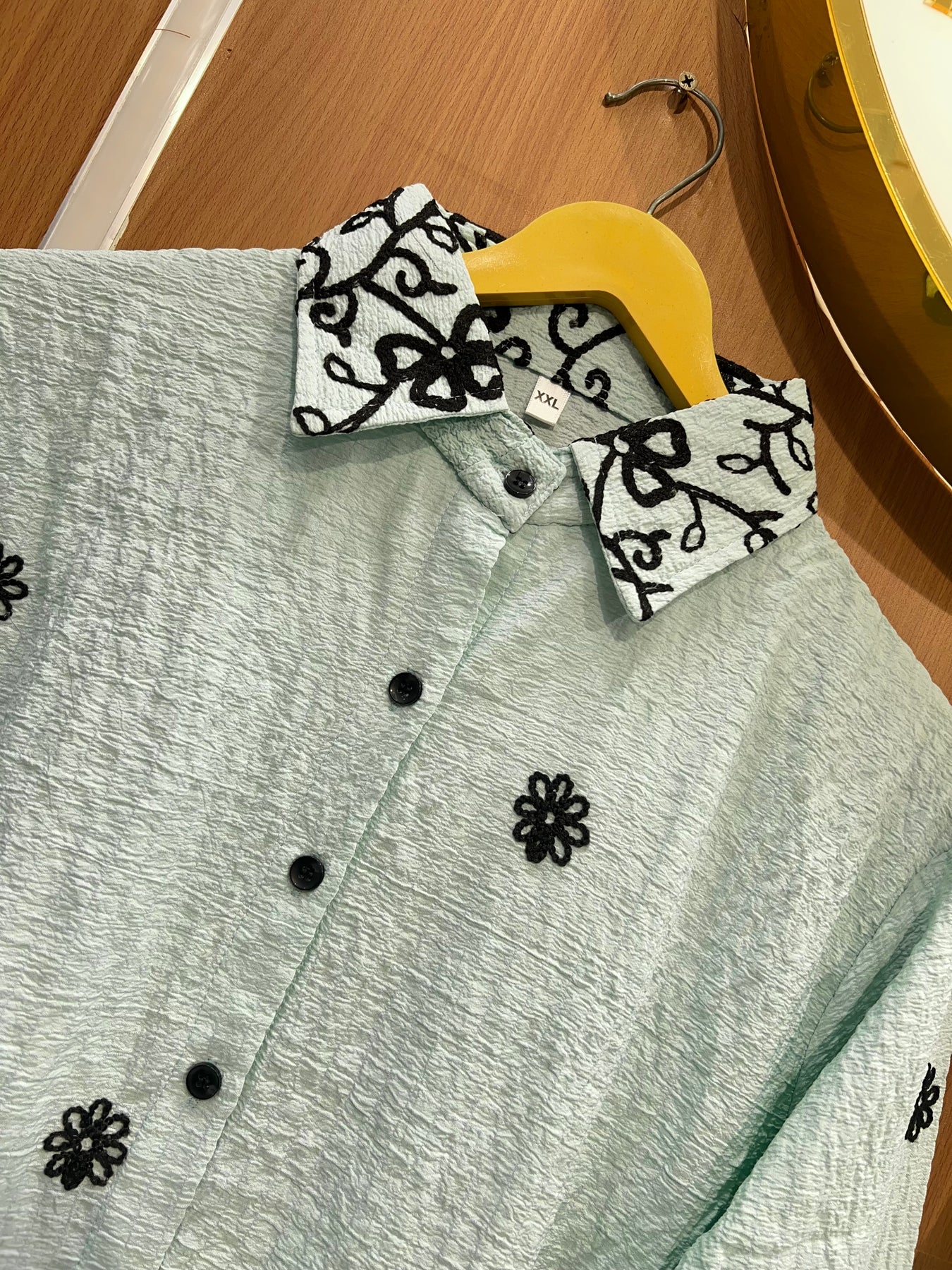 Bottom :- crinkle palazzo’s with Kashmiri embroidery work