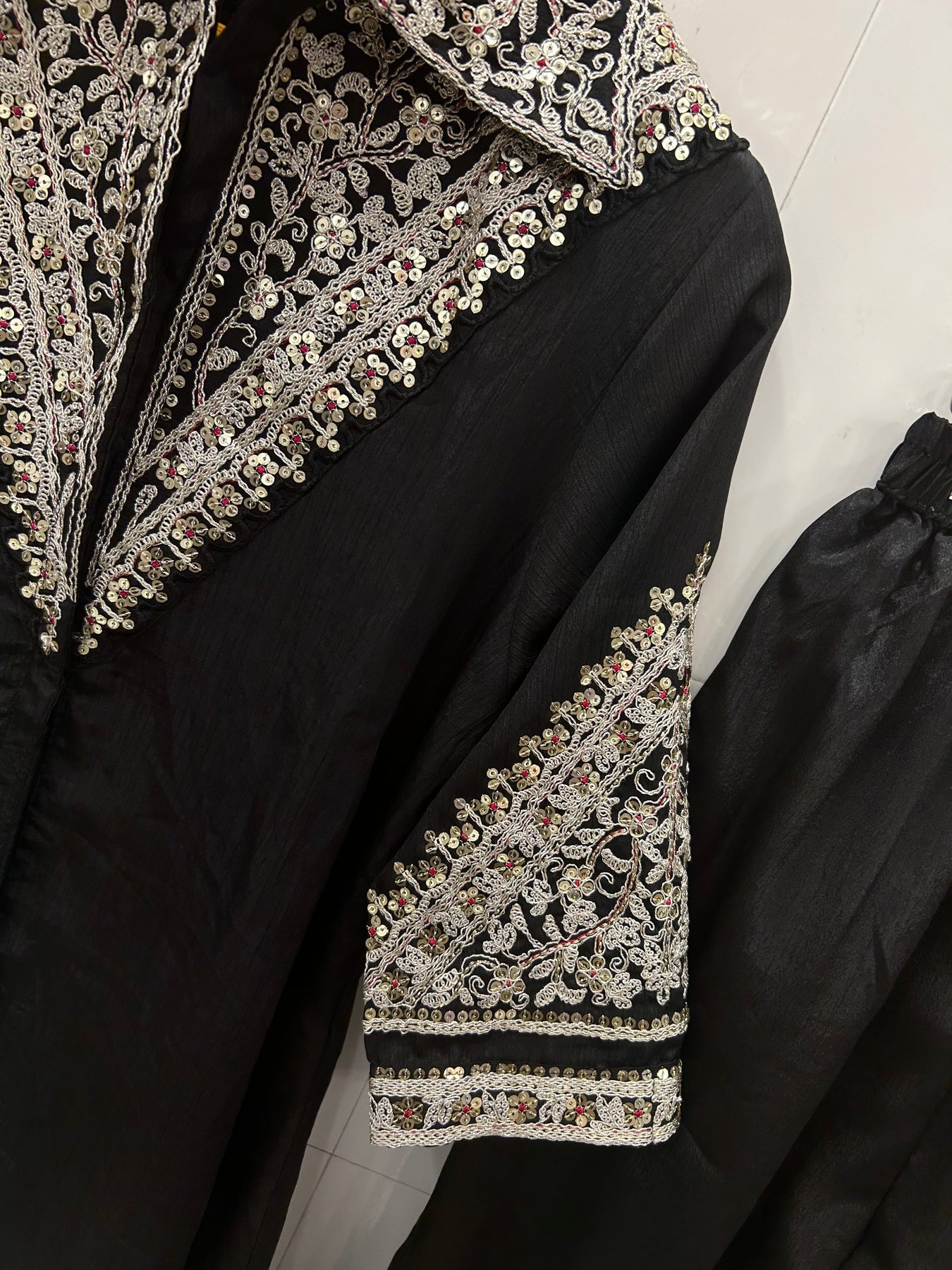 Top:-silk top with zari embroidery work front and back both side work
