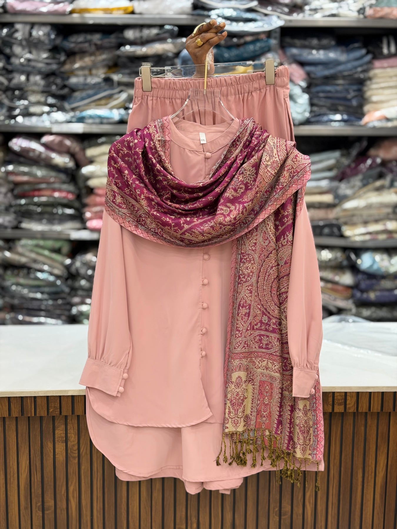 D No:-3137.Expertly crafted from imported fabric, these basic co-ord sets are the epitome of quality and style. With superior materials and construction, the tops offer long-lasting comfort and durability. Upgrade your wardrobe with this must-have piece for a touch of luxury in your everyday look.