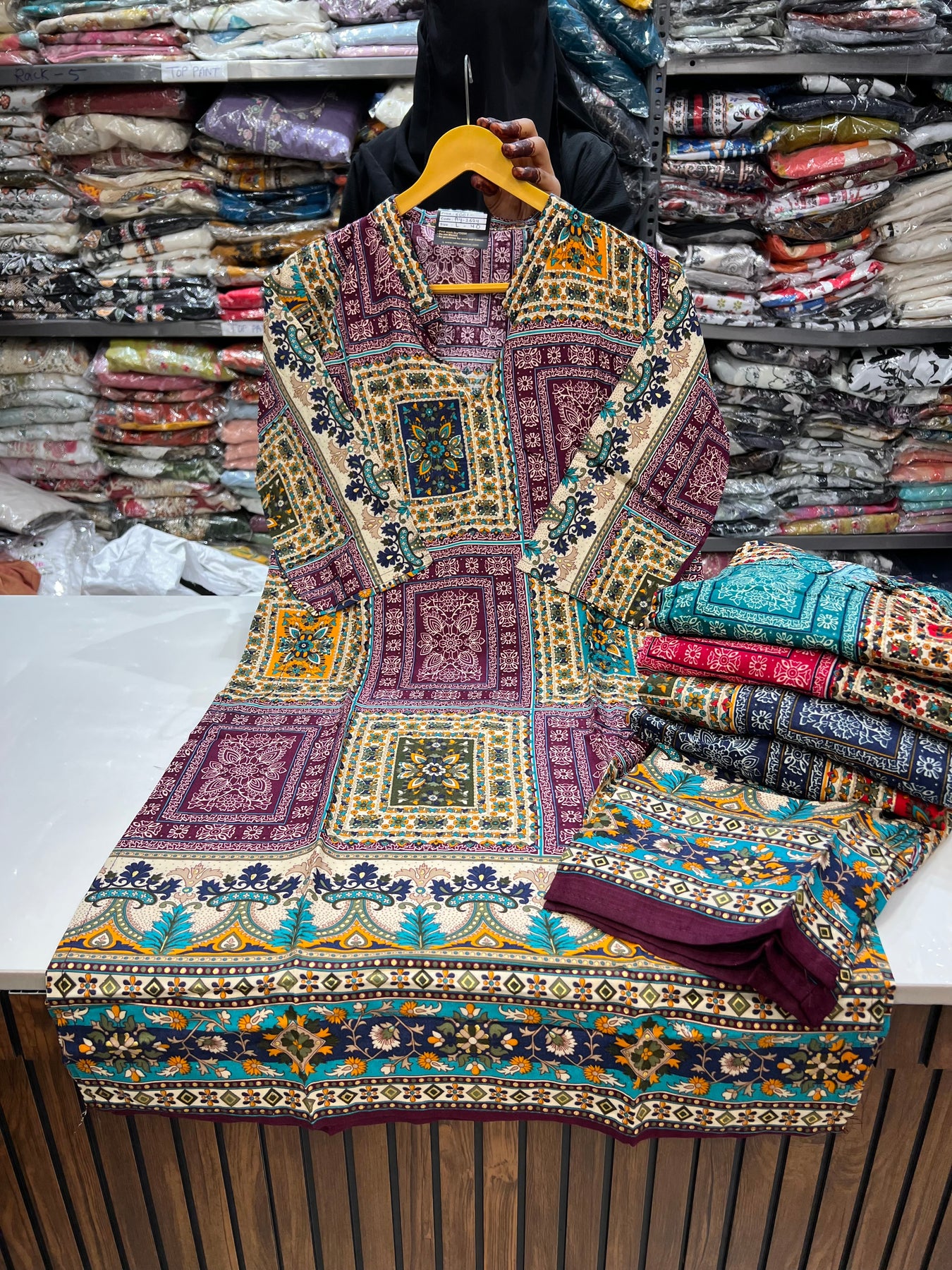 D no :- 2624  This rayon printed kurti pant set is the perfect addition to your wardrobe. Made from high-quality rayon fabric, it offers both comfort and style. The unique print adds a touch of elegance and versatility, making it a must-have for any fashion-forward individual. Upgrade your look with this expertly crafted set.