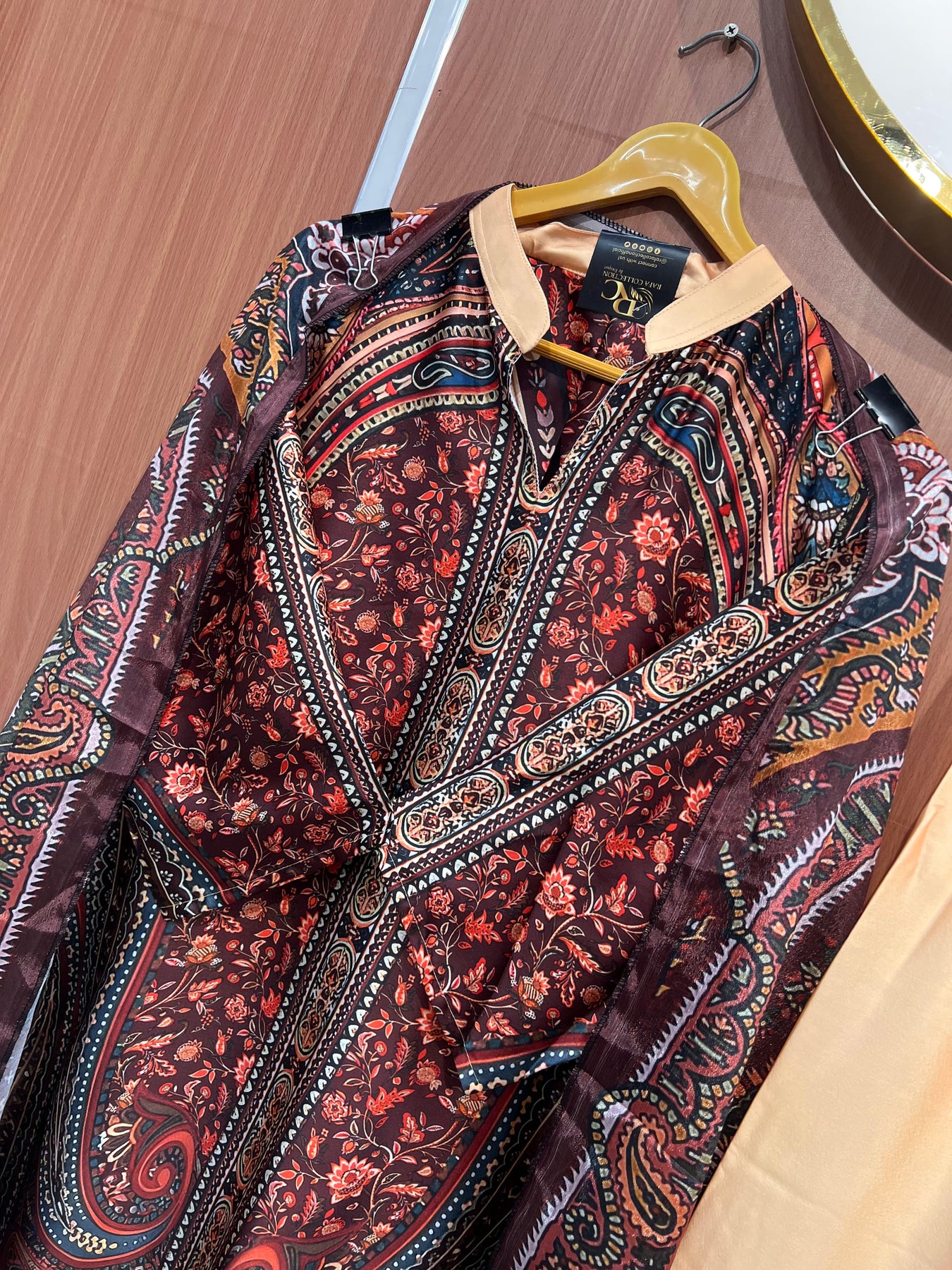 D no :- 2549 This Turkish co-ord set features an American satin printed top, providing a luxurious and stylish addition to your wardrobe. The smooth and soft material offers comfort while the unique design adds a touch of sophistication. Upgrade your outfit game with this co-ord set.