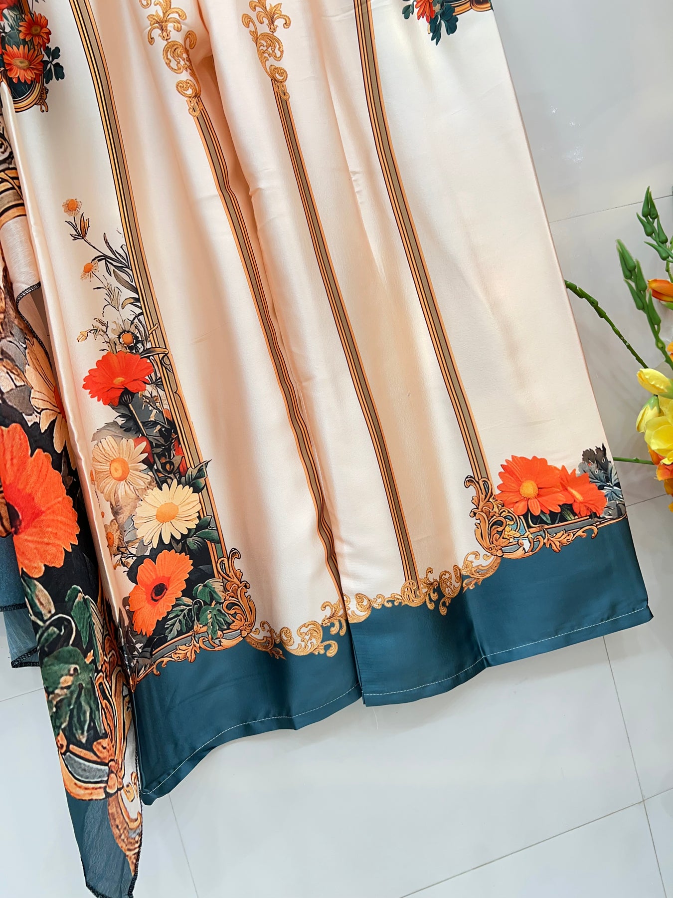 D no :- 2576 Effortlessly elevate your style with our Turkish co-ord set. Made from luxuriously smooth satin, the printed top adds a touch of elegance to any outfit. Perfect for any occasion, this set combines comfort and sophistication for a flawless look.