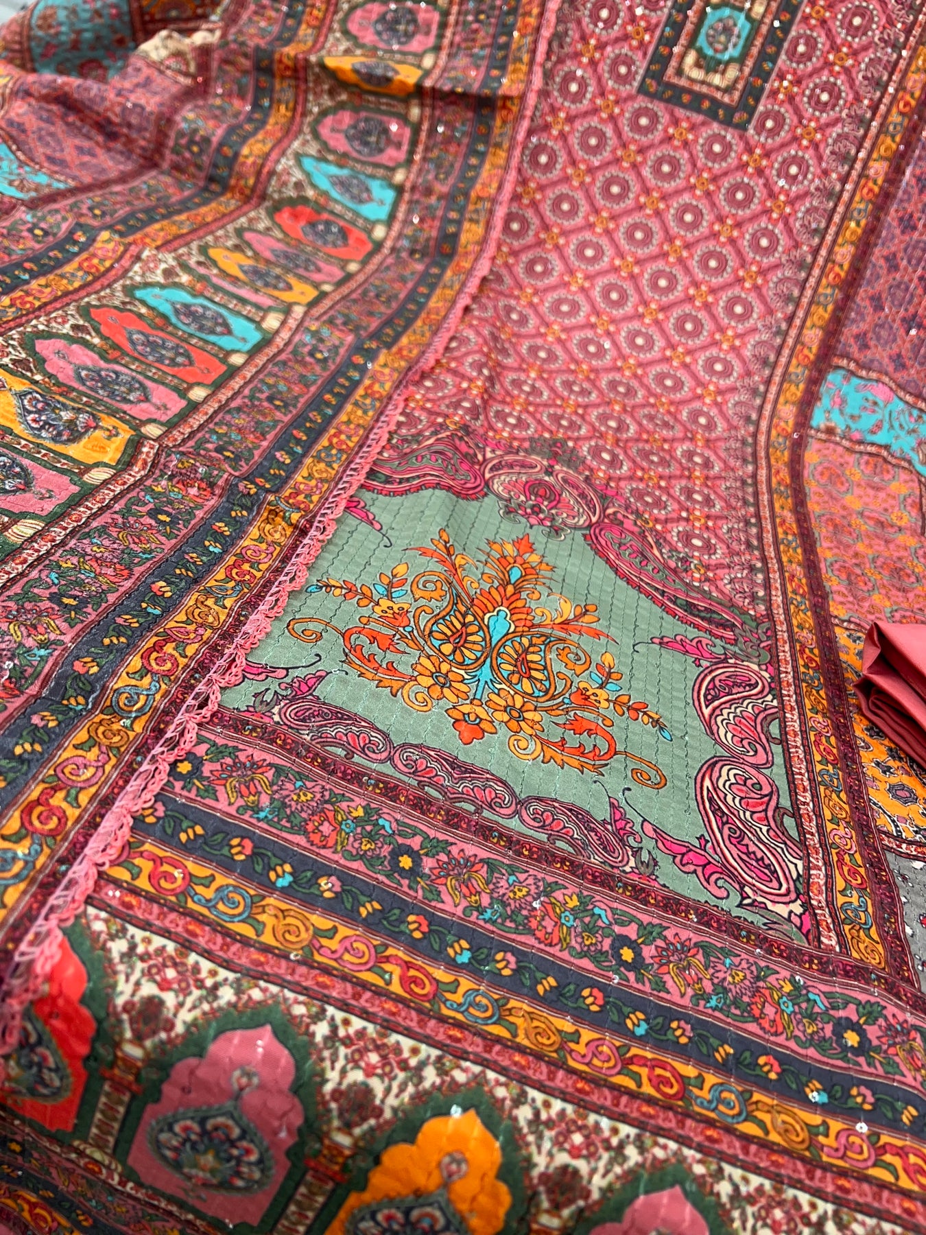 Top:- Multi Colour crepe sequence 2.25 meters Kurti (back side plain)