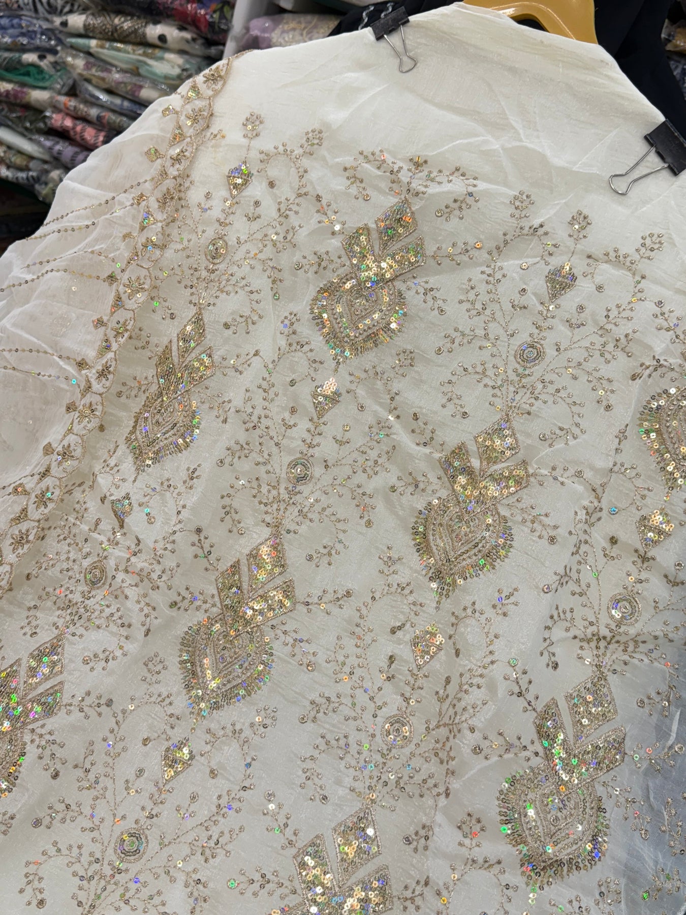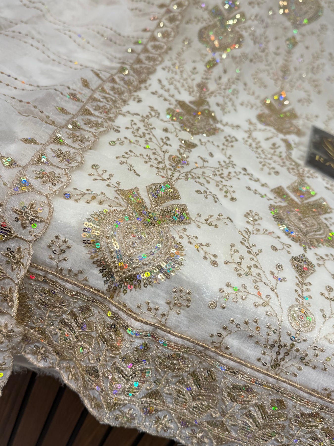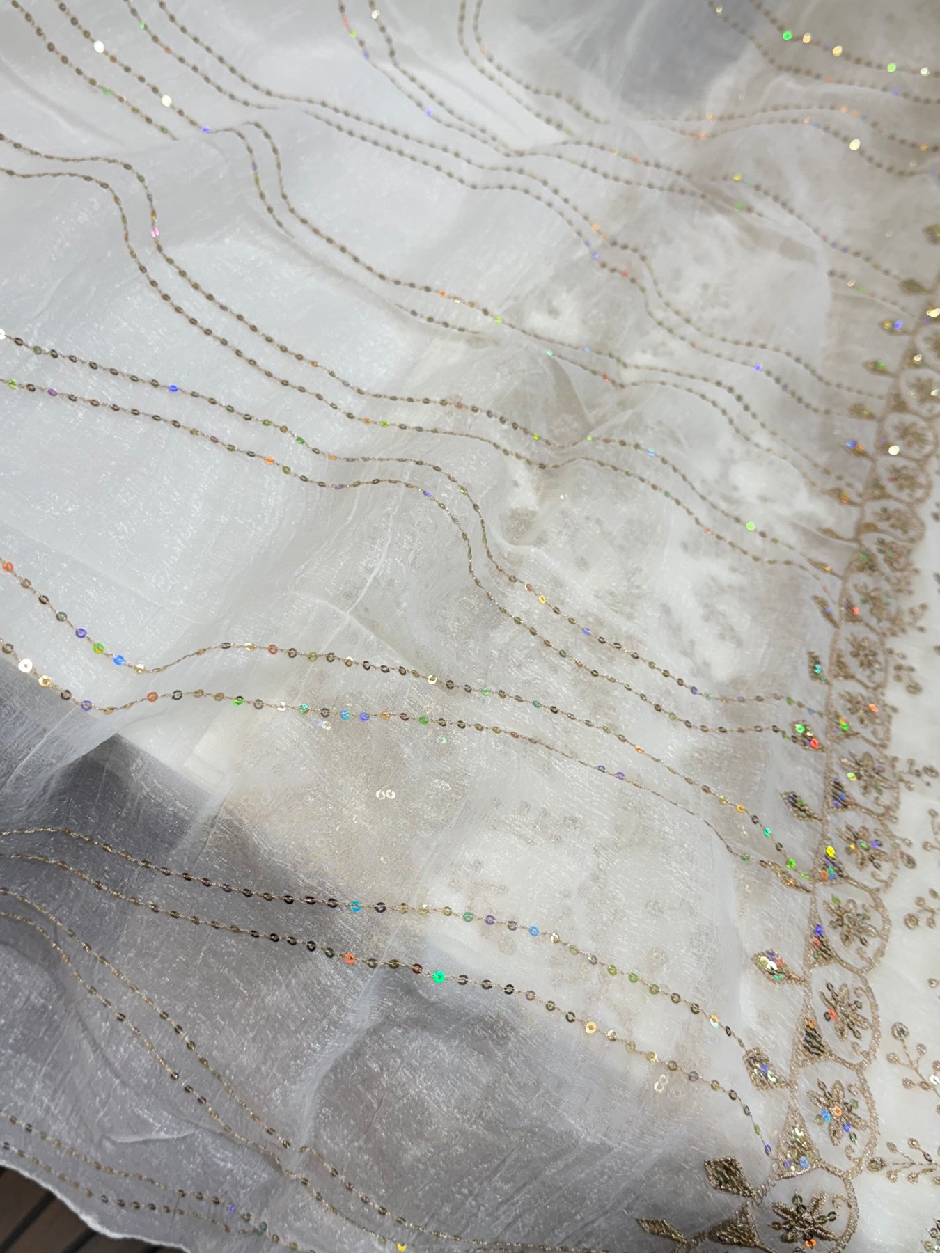 Dupatta:-Organza dupatta with zari thread and sequence work