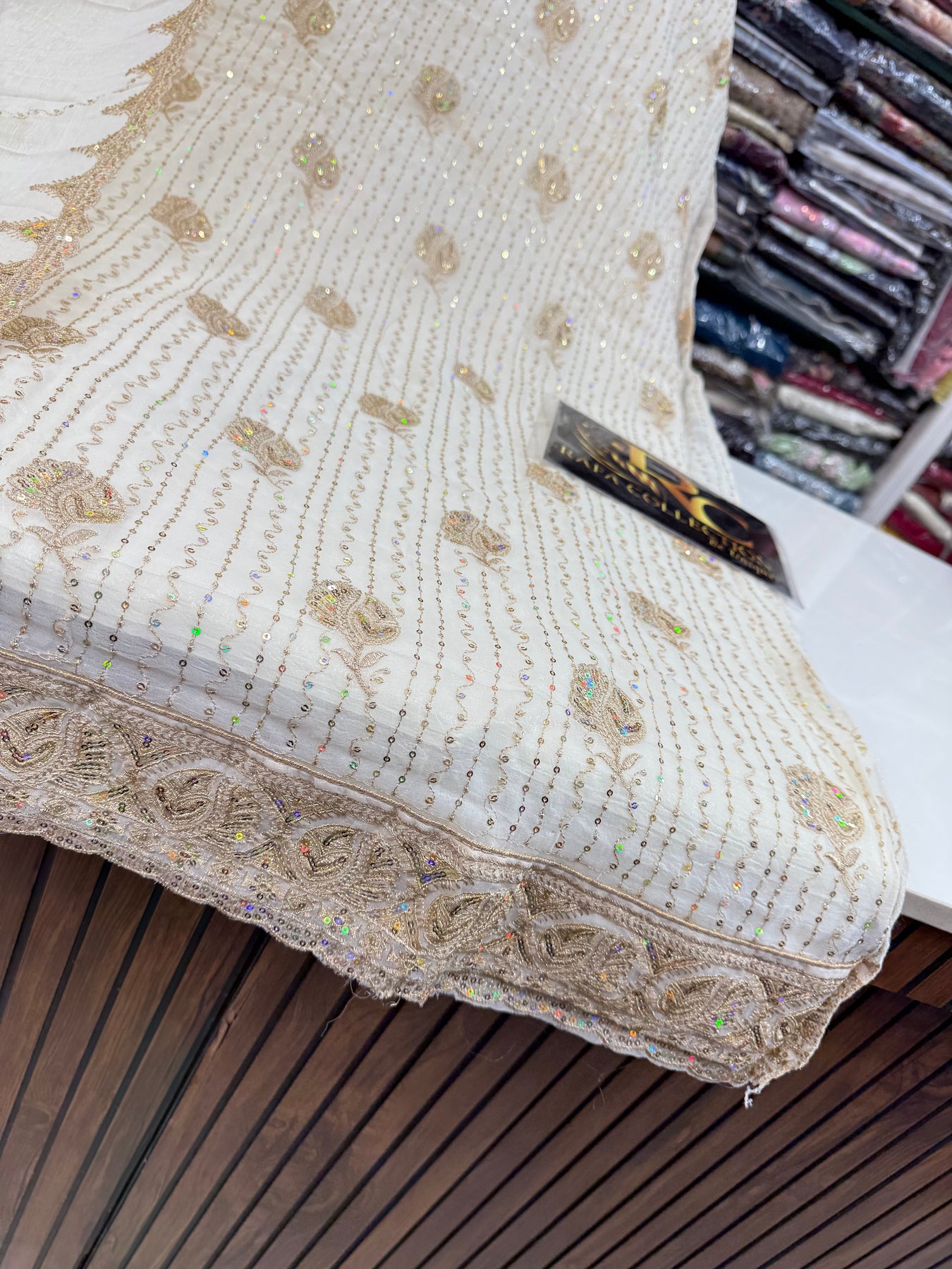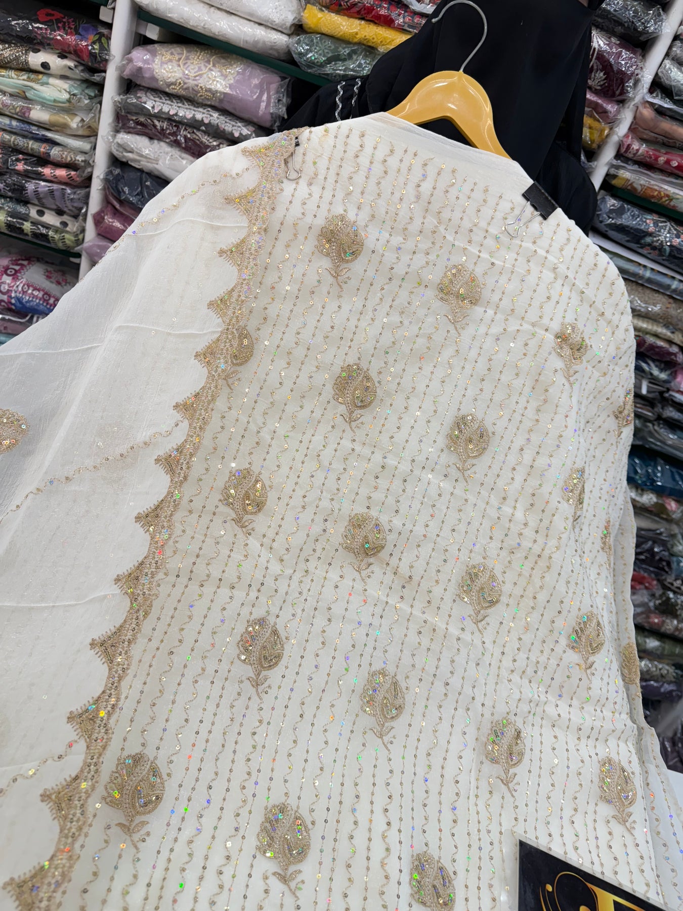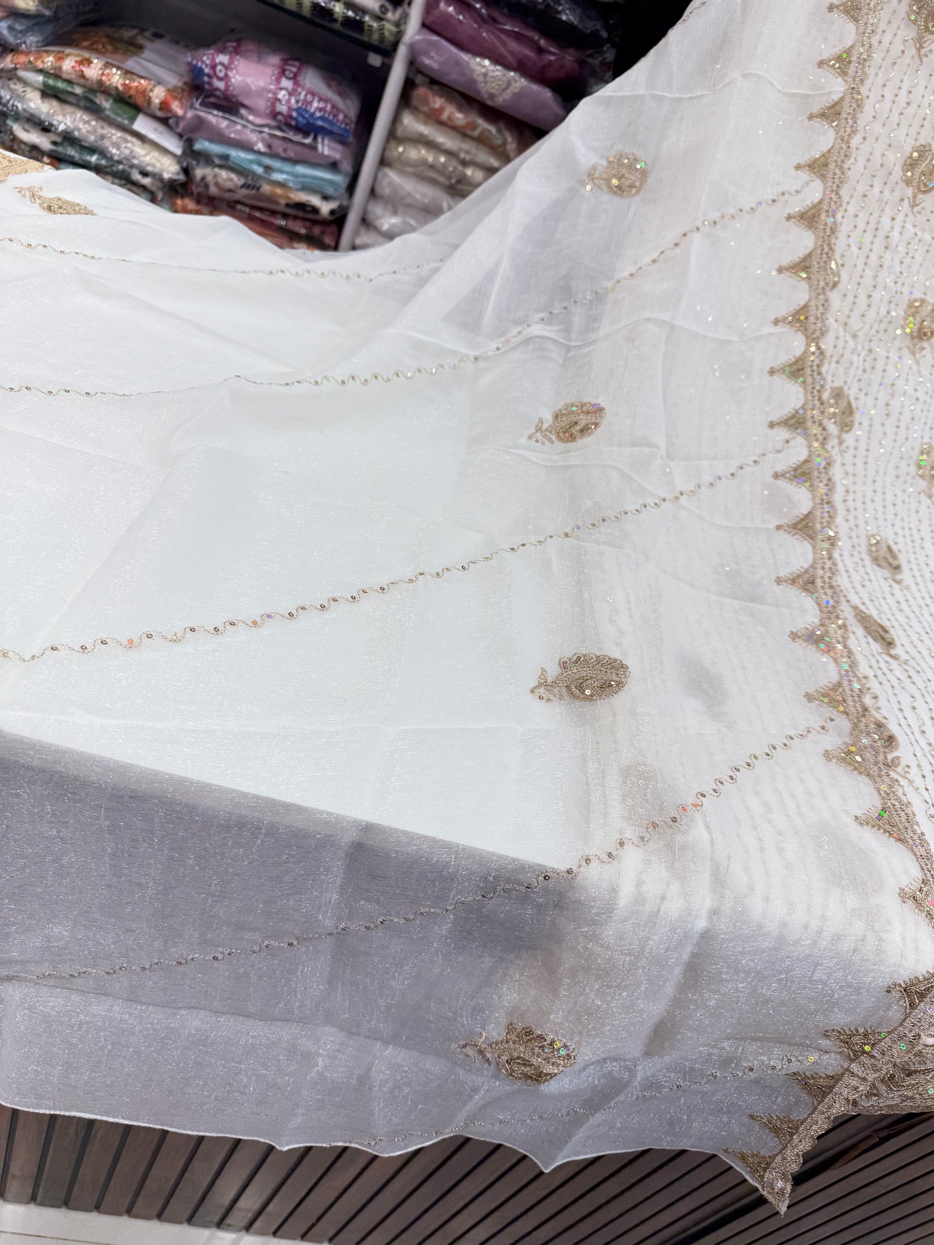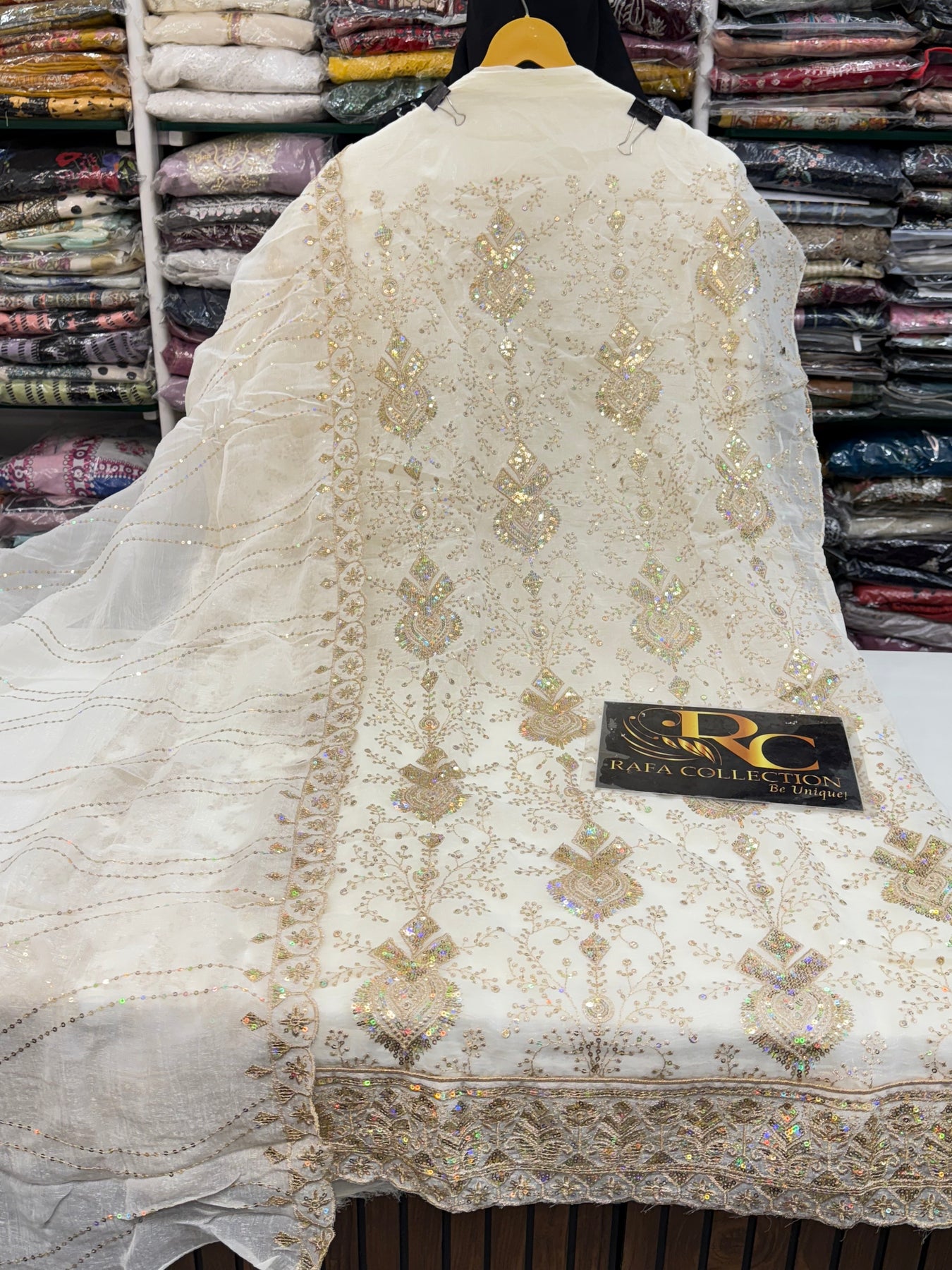 Dupatta:-Organza dupatta with zari thread and sequence work