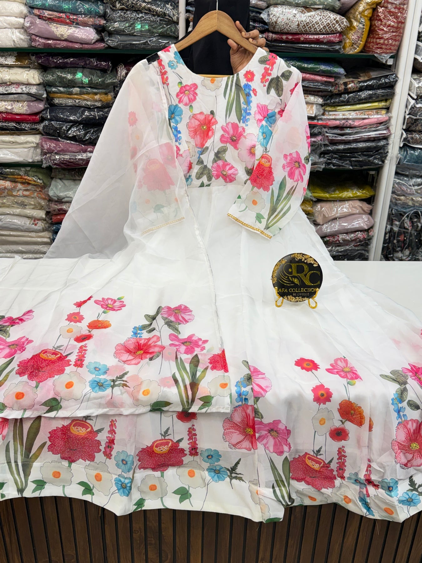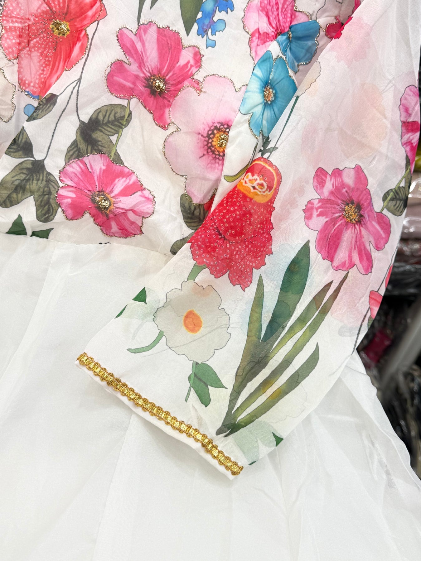 D No:-2846."Expertly designed with soft Organza material, this printed top offers a luxurious touch and comfortable wear. Perfect for a formal occasion or a day out, it exudes sophistication and style while providing a lightweight and breathable fit."