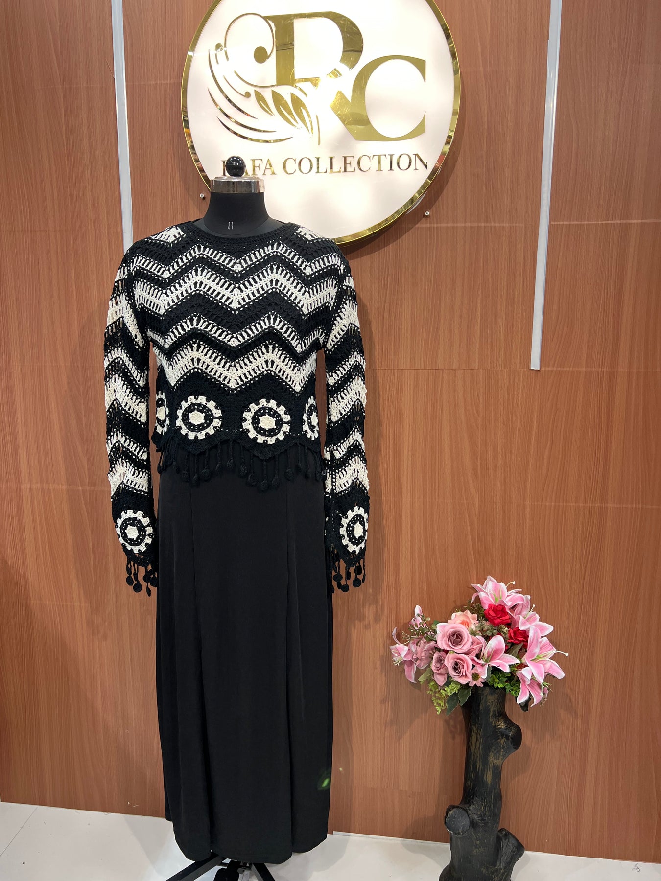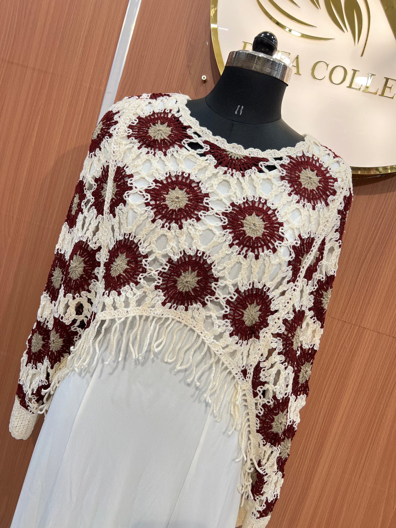 Top:-  Stretchable Lycra dress with separate crochet poncho