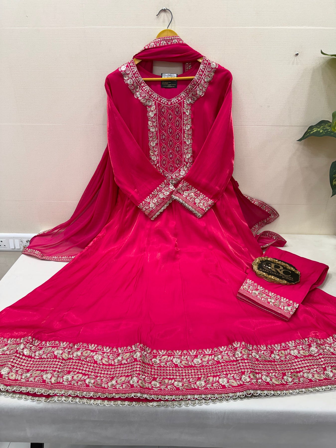 D No:-2929.The Shimmer suits feature a luxurious shimmer satin fabric, enhanced with intricate Zari and sequence work. This combination not only elevates the aesthetic appeal but also ensures durability and ease of wear, making it suitable for various occasions. The design offers a sophisticated option for those seeking elegance in their attire.
