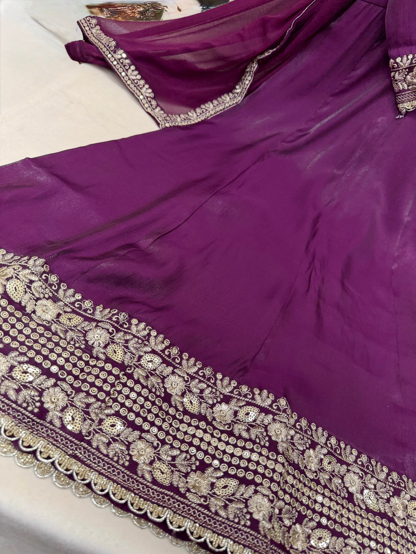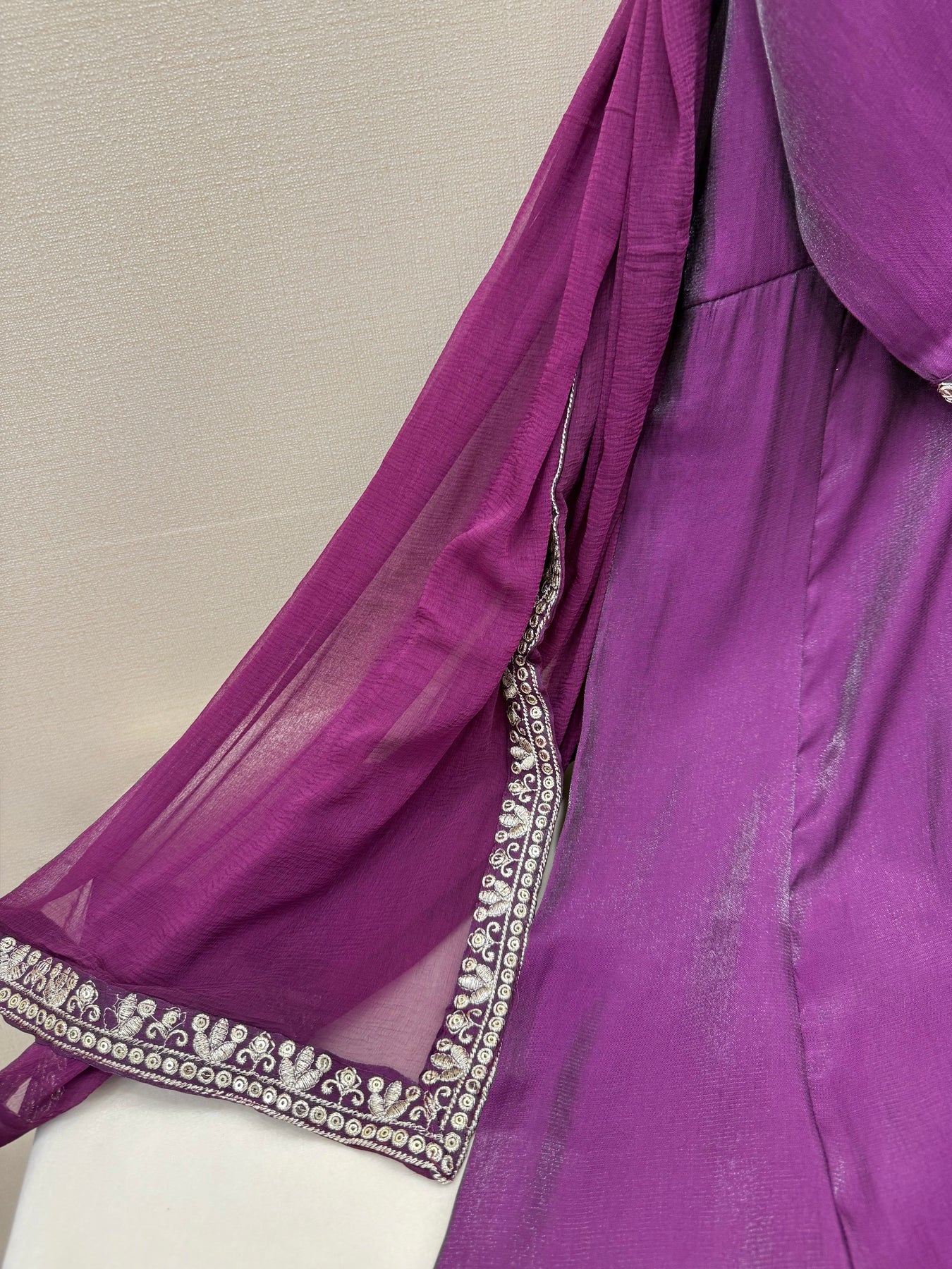 Dupatta:-Shiffon dupatta with embroidery and sequence work