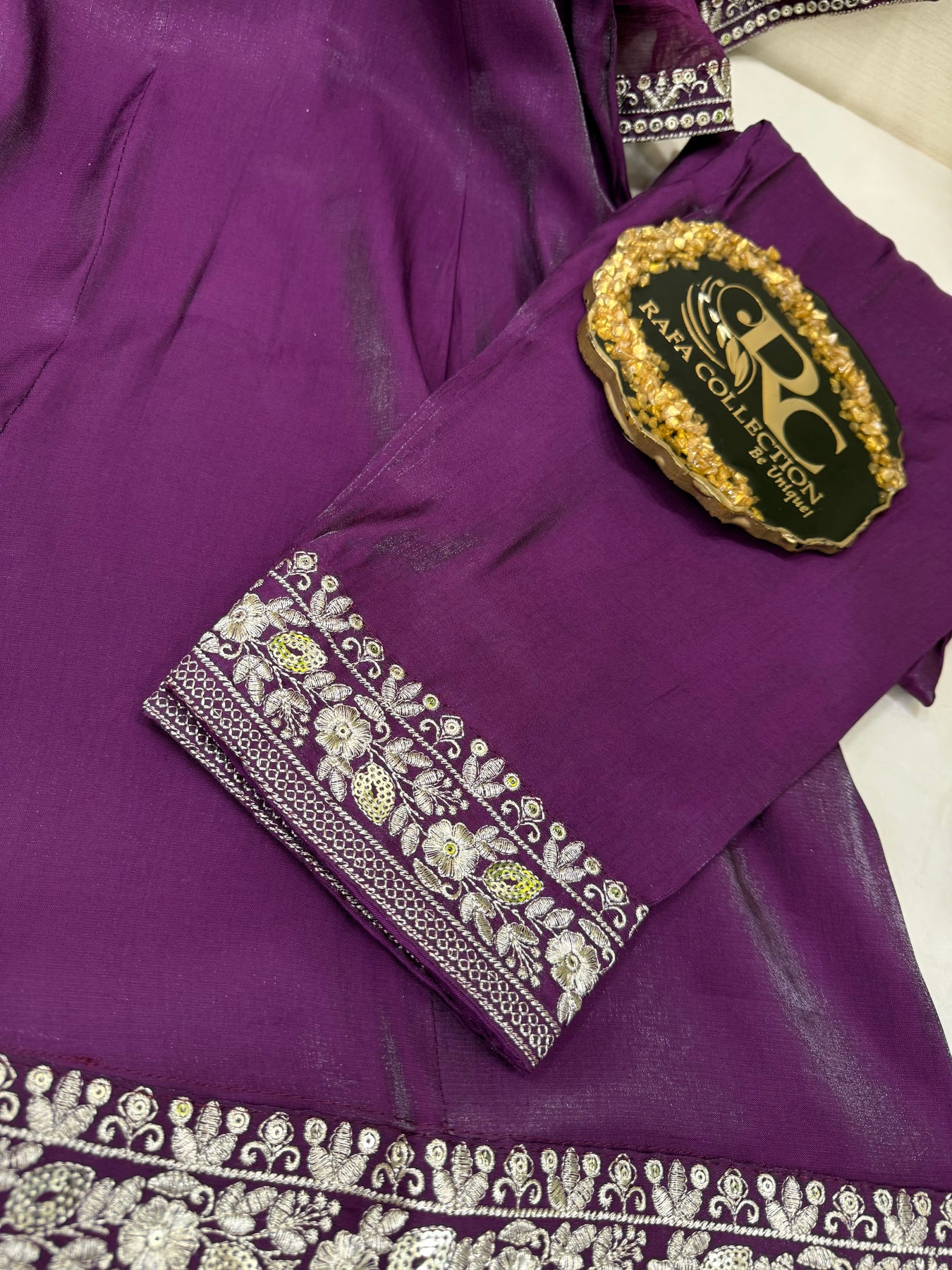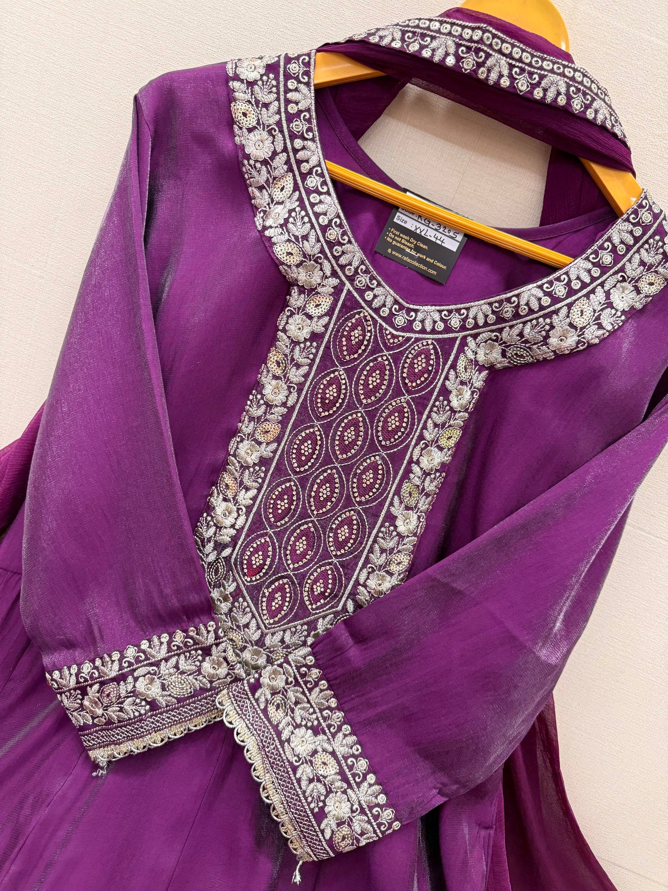 Top:-Shimmer satin kurti with Zari and sequence work