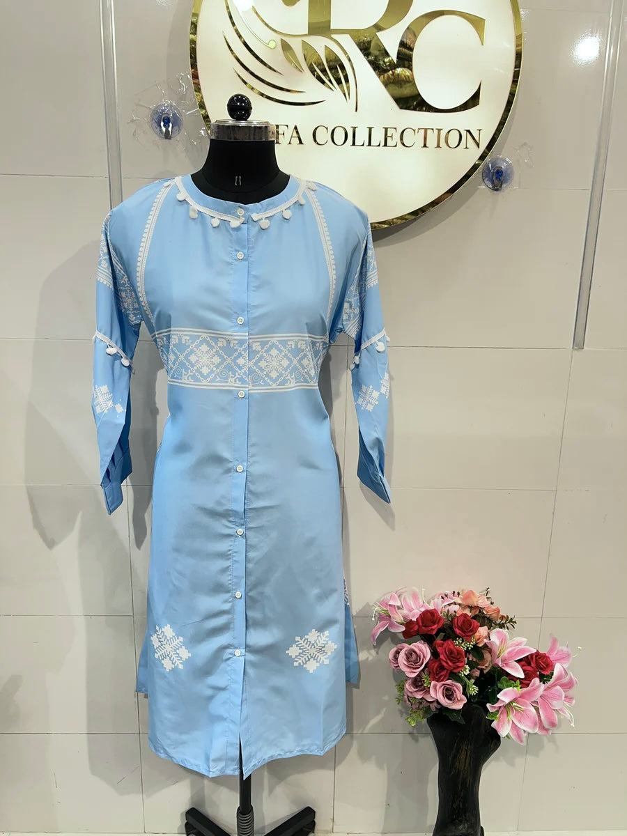 D.no:-1865. Expertly crafted with natural crape and featuring traditional Turkish prints, these dresses are finished with elegant caff sleeves. Experience the authentic beauty and timeless style of Turkish fashion.