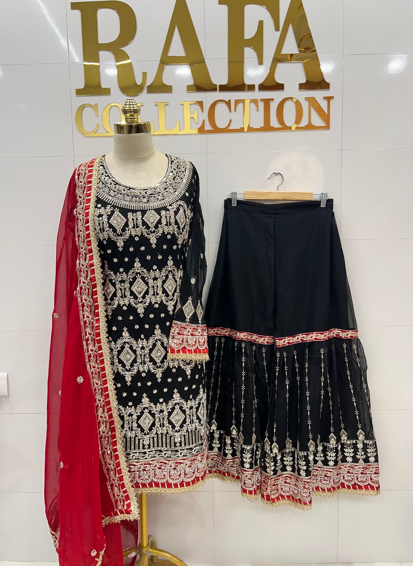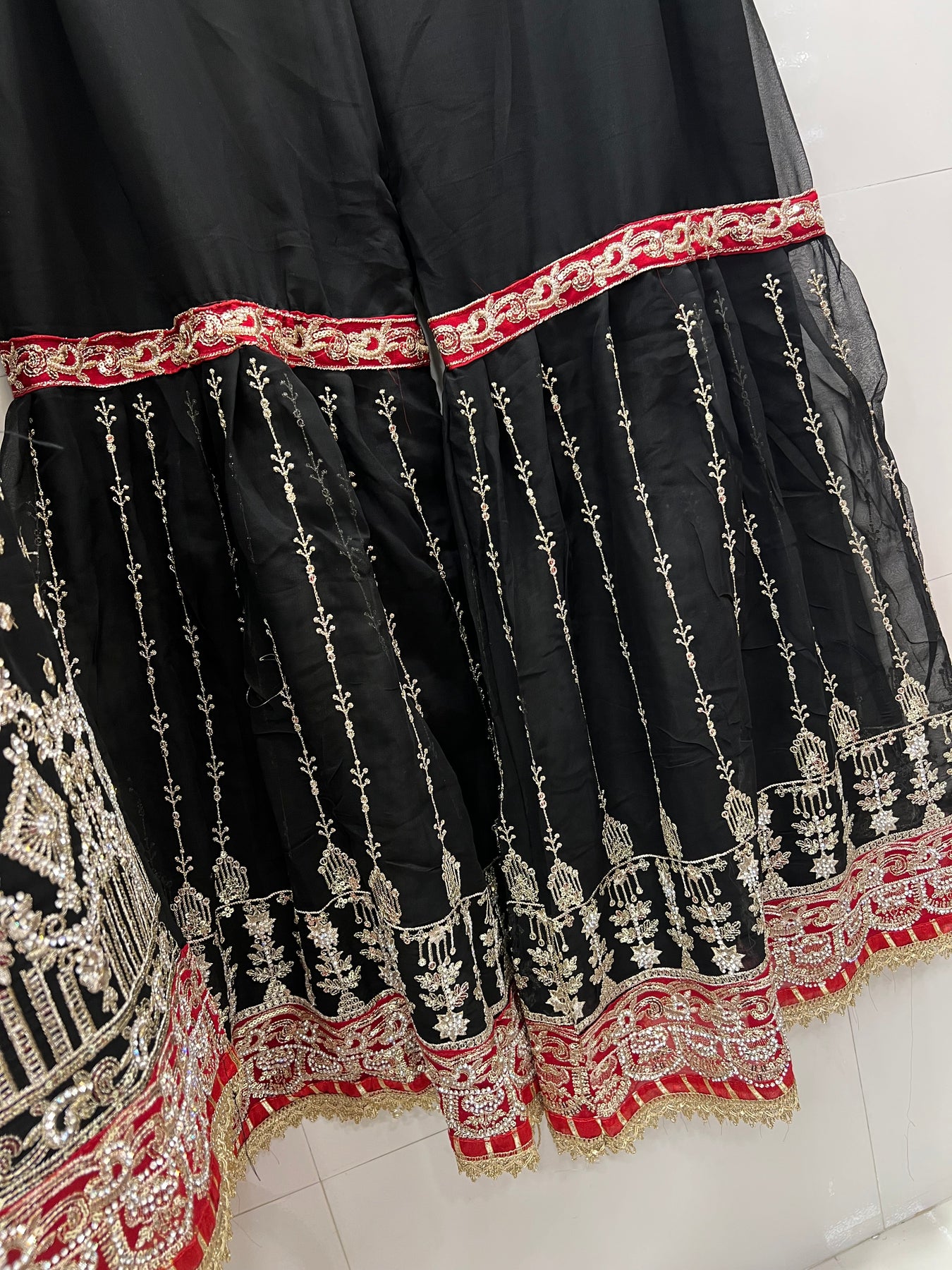 Bottom:-georgette garara with embroidery and zarkan with lace work