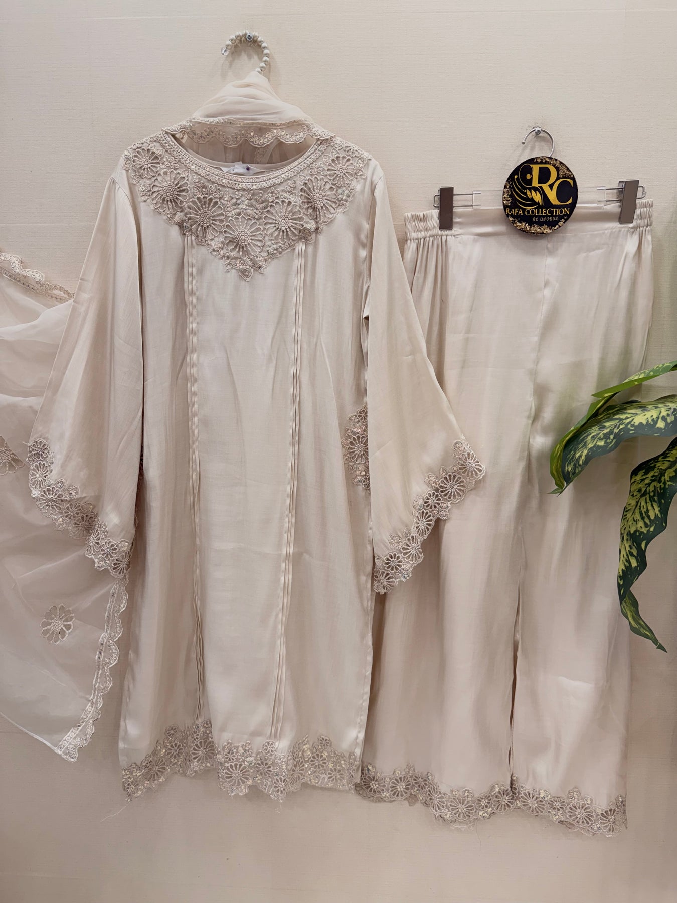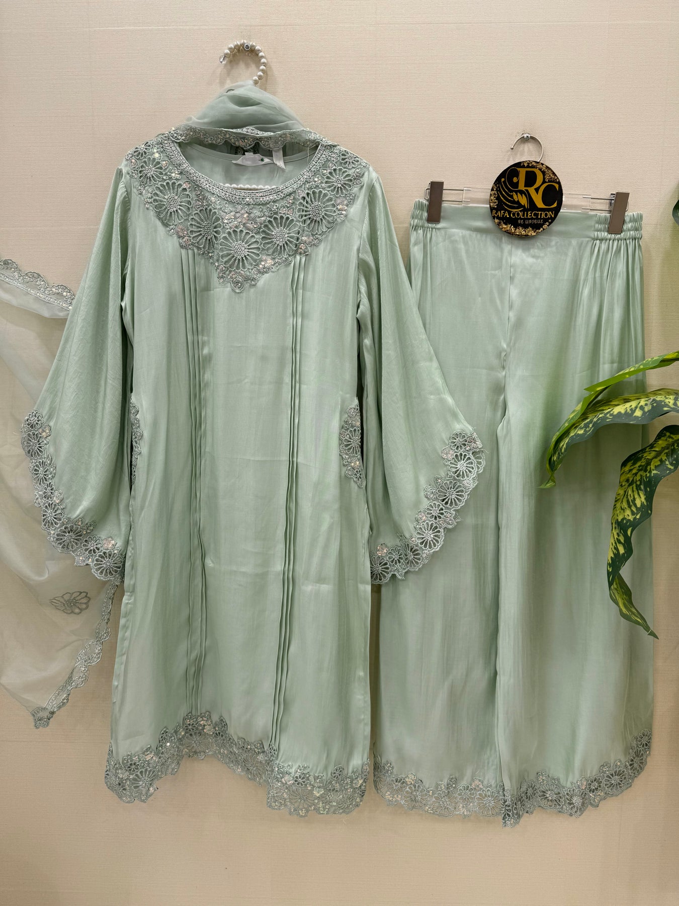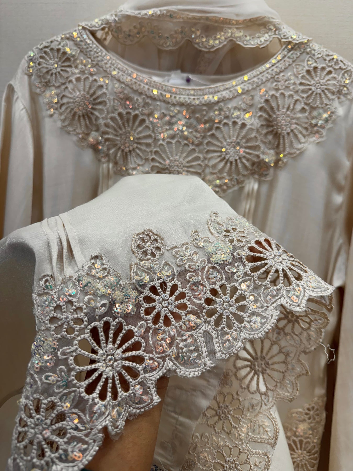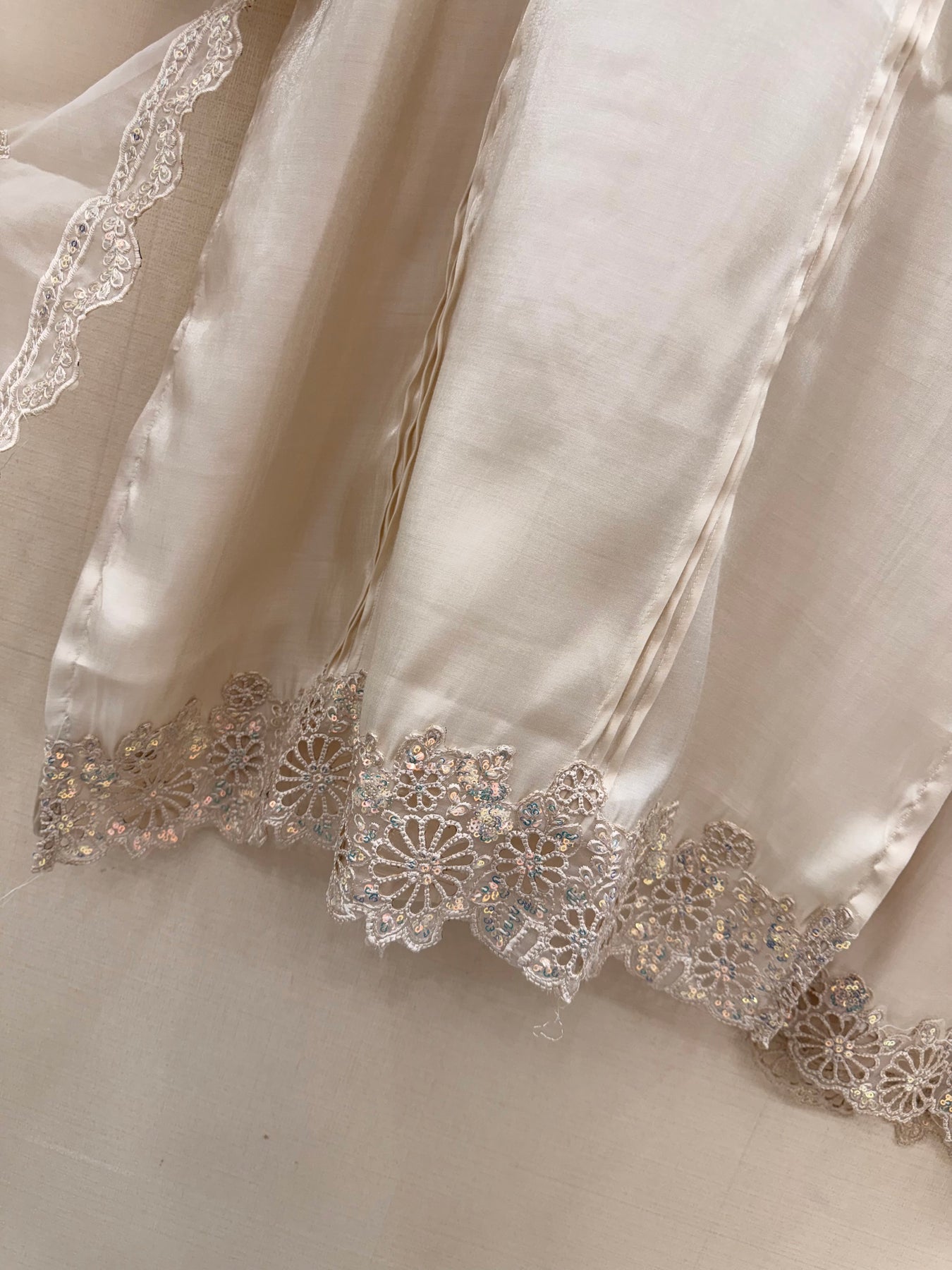 Dupatta:-Organza dupatta with cutwork and sequence work