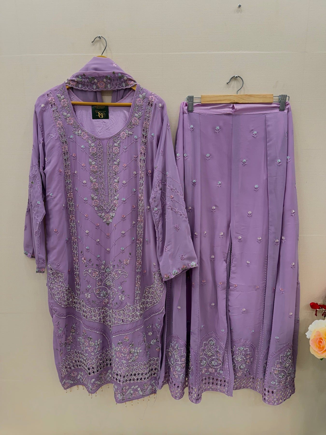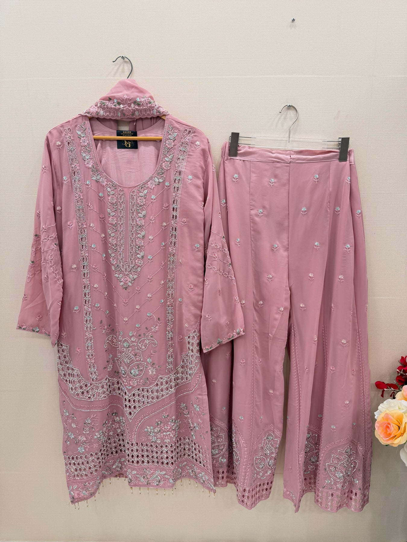 Bottom:-shiffon palazzo with heavy embroidery and zarkan work