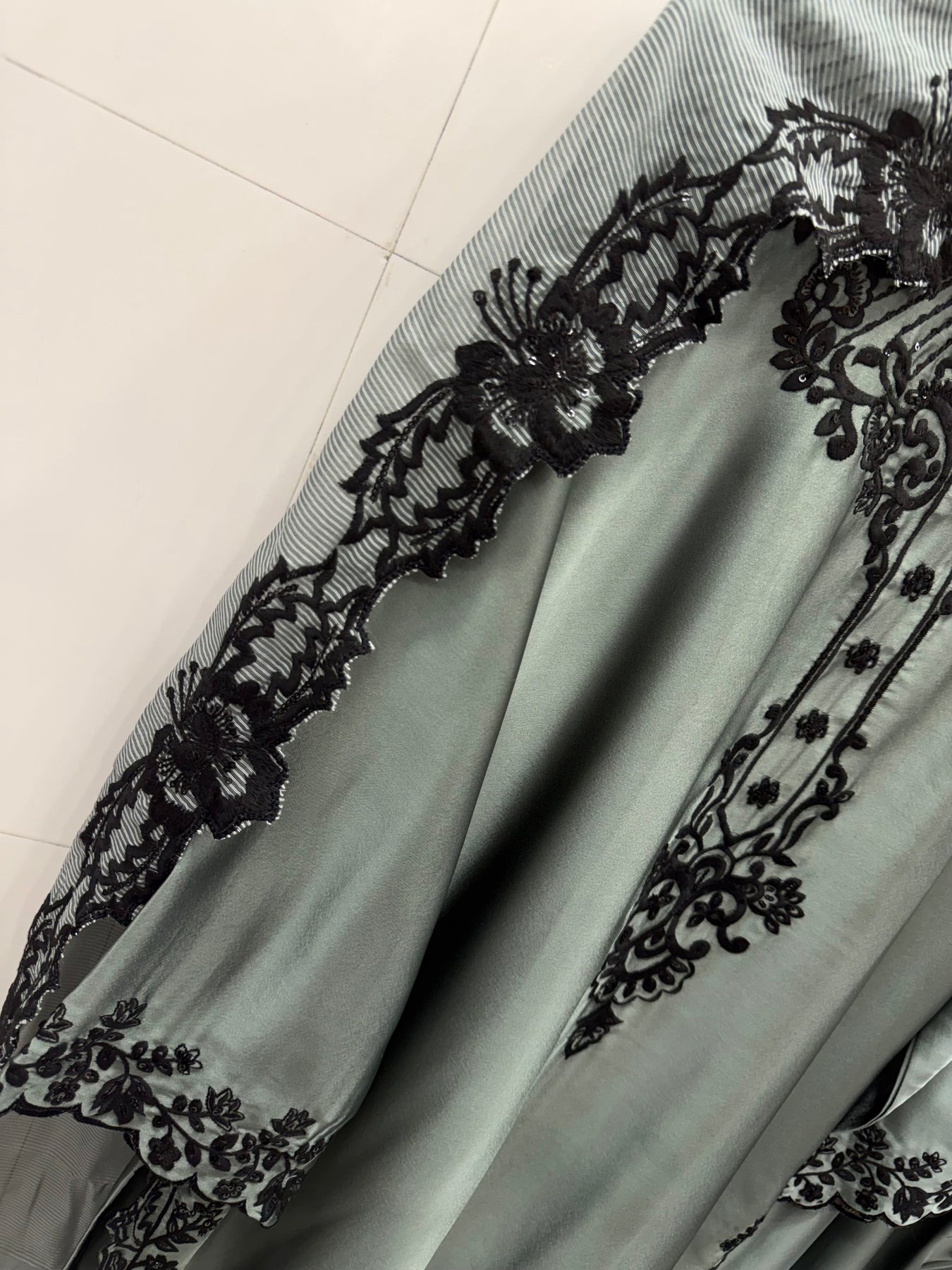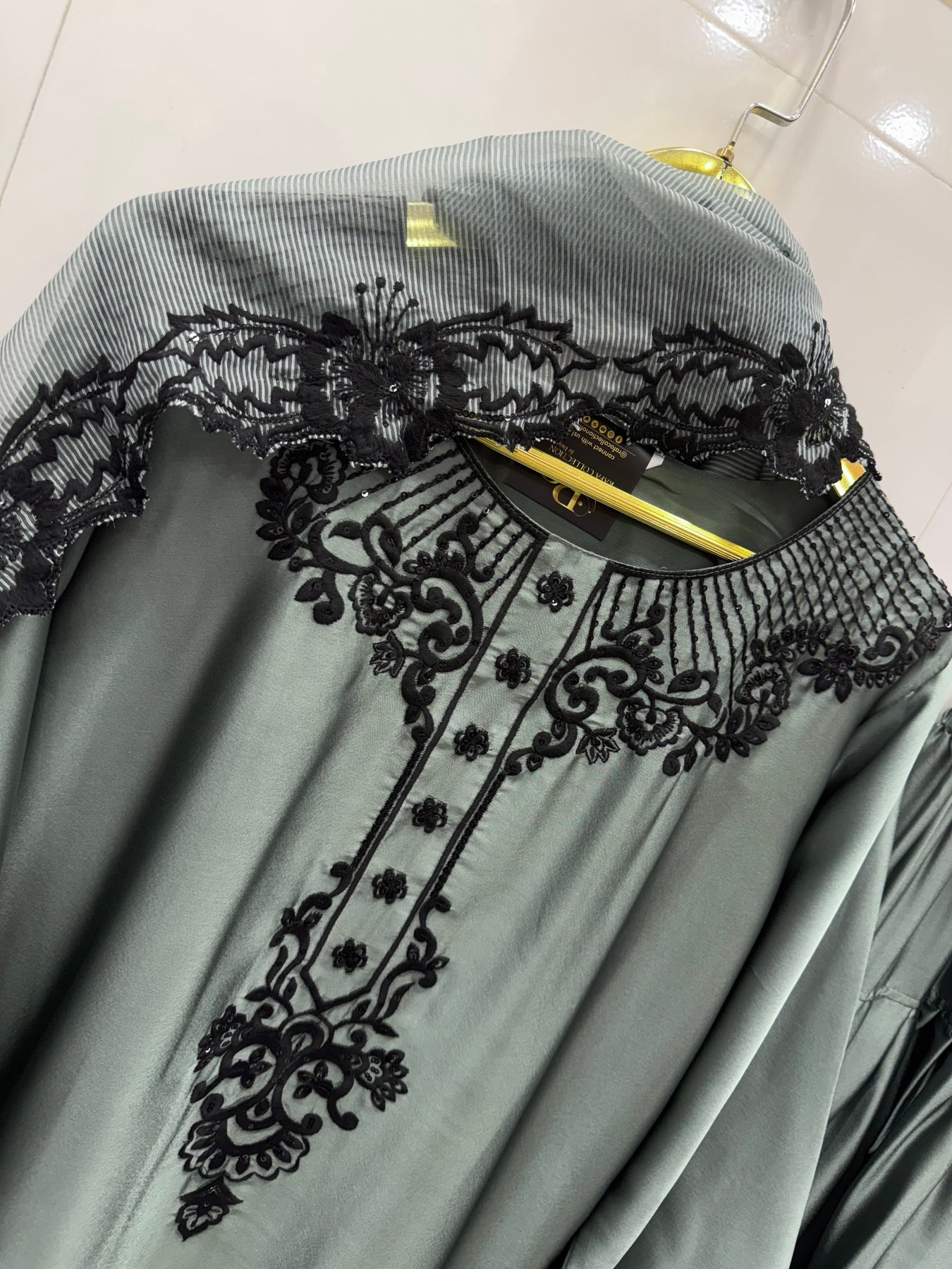 Top:-Satin kurti with sequence embroidery work