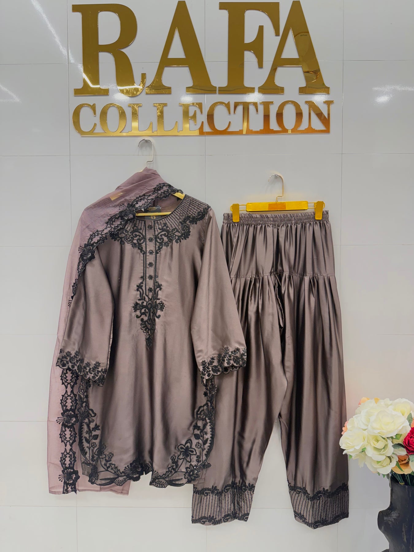Bottom:- satin Farshi salwar with sequence embroidery work