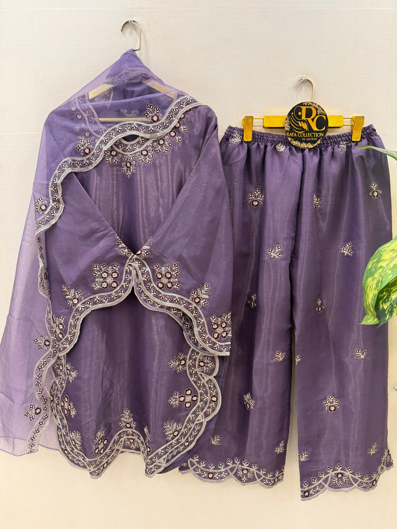 Bottom:-Shimmer Organza palazzo with embroidery work