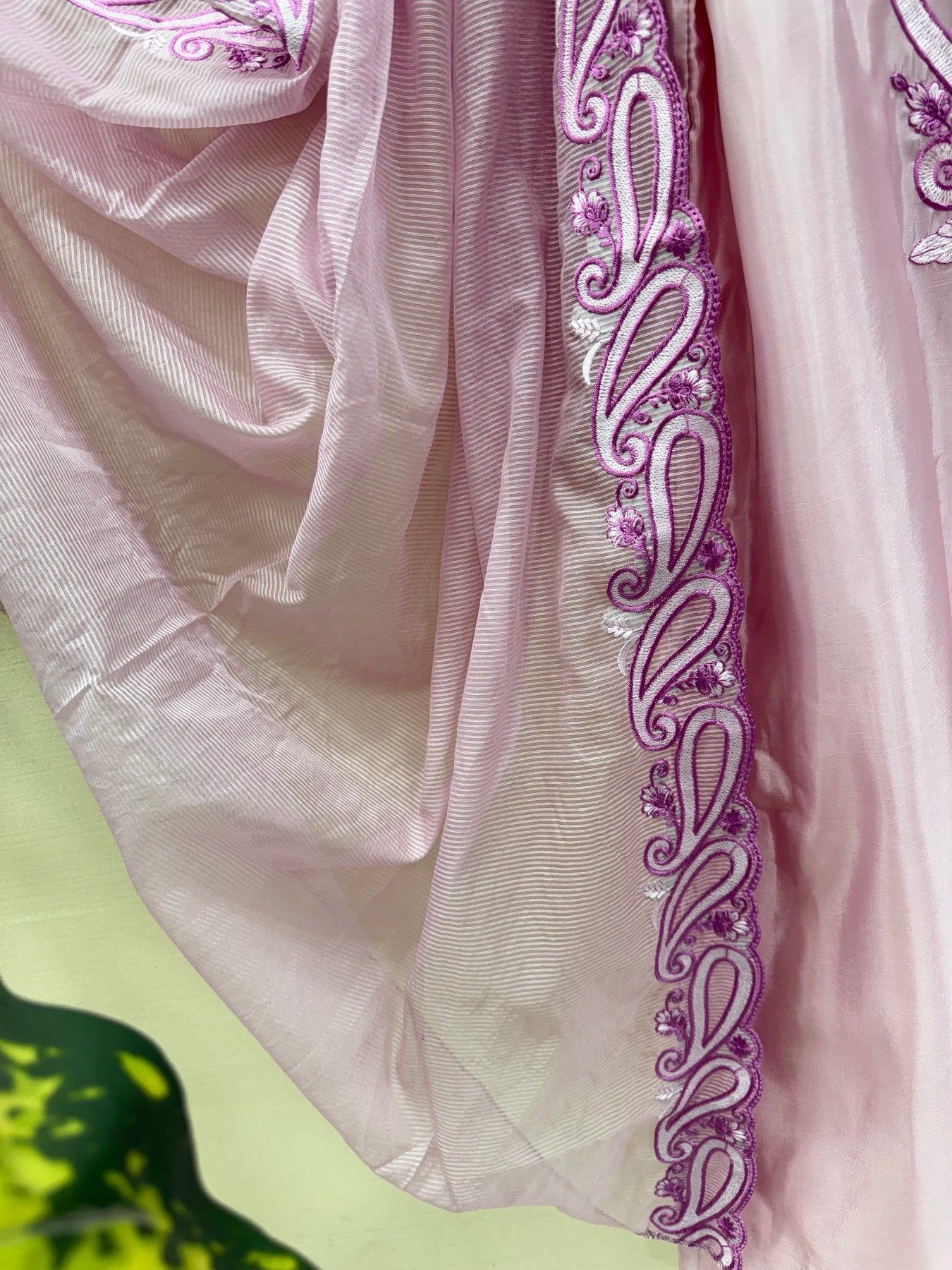Bottom:-shimmer organza Farshi salwar with embroidery work
