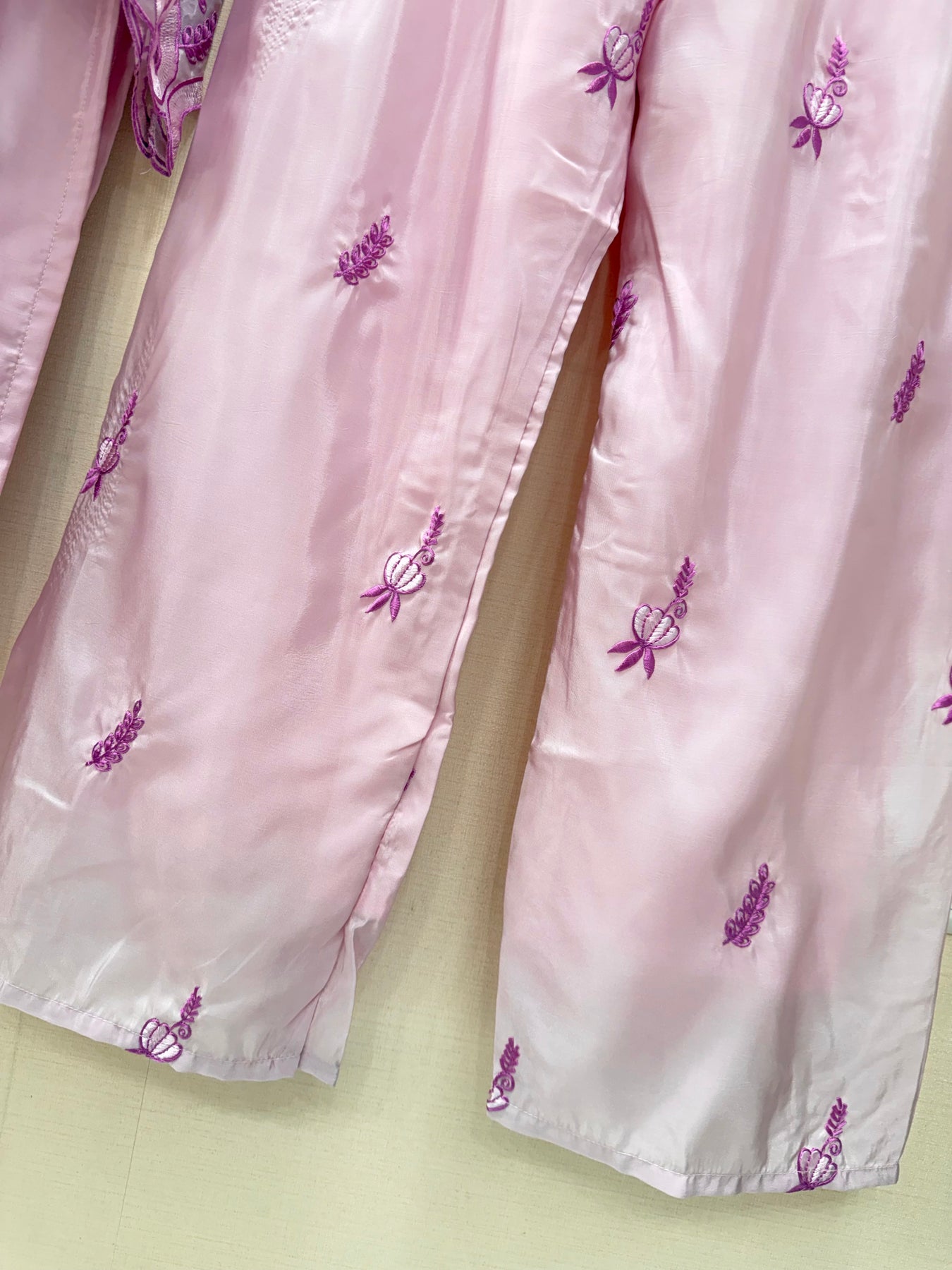Top:-Shimmer Organza kurti with embroidery work (cutwork sleeves)