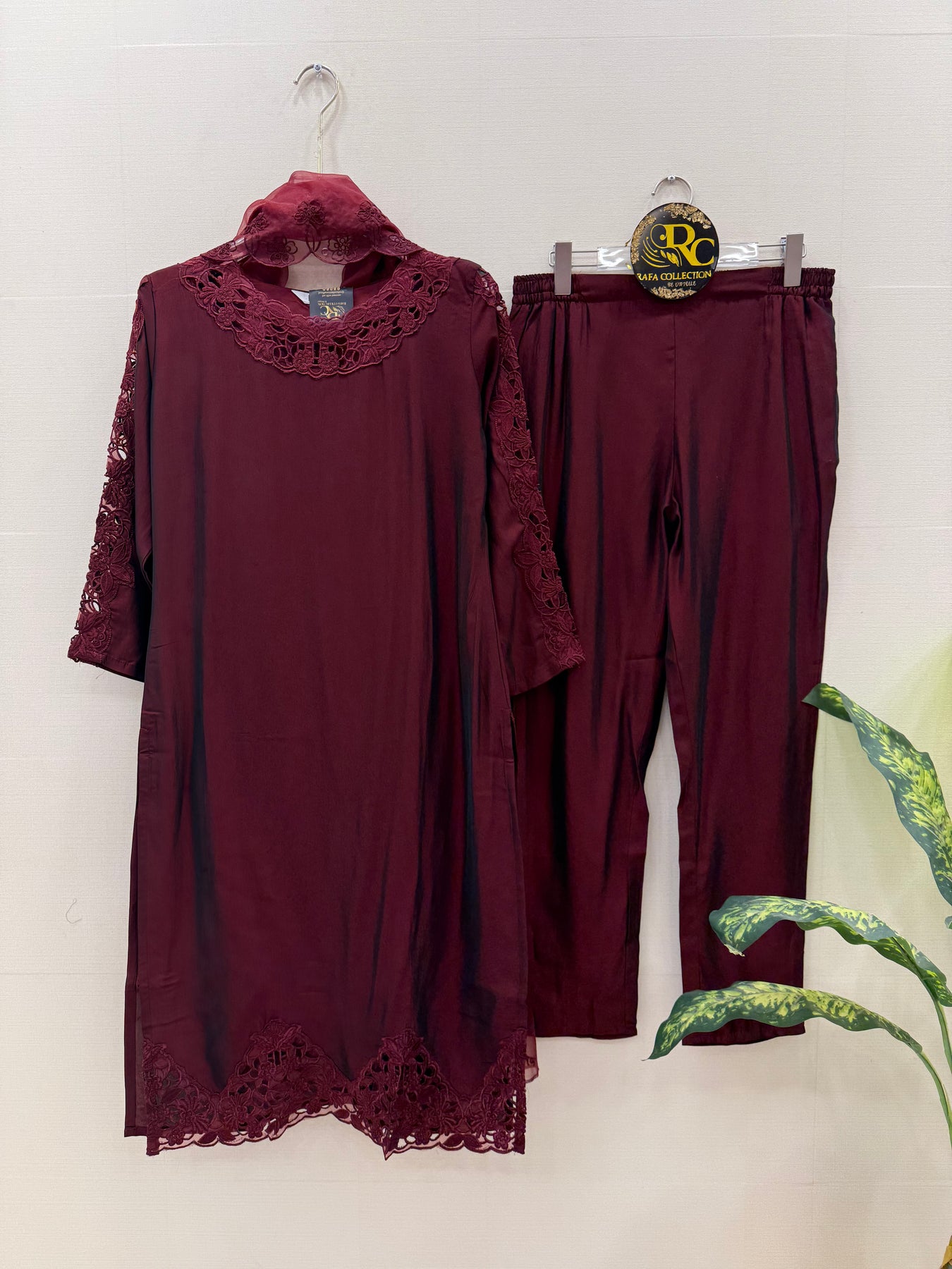 Top:-Shimmer silk kurti with embroidery and cutwork
