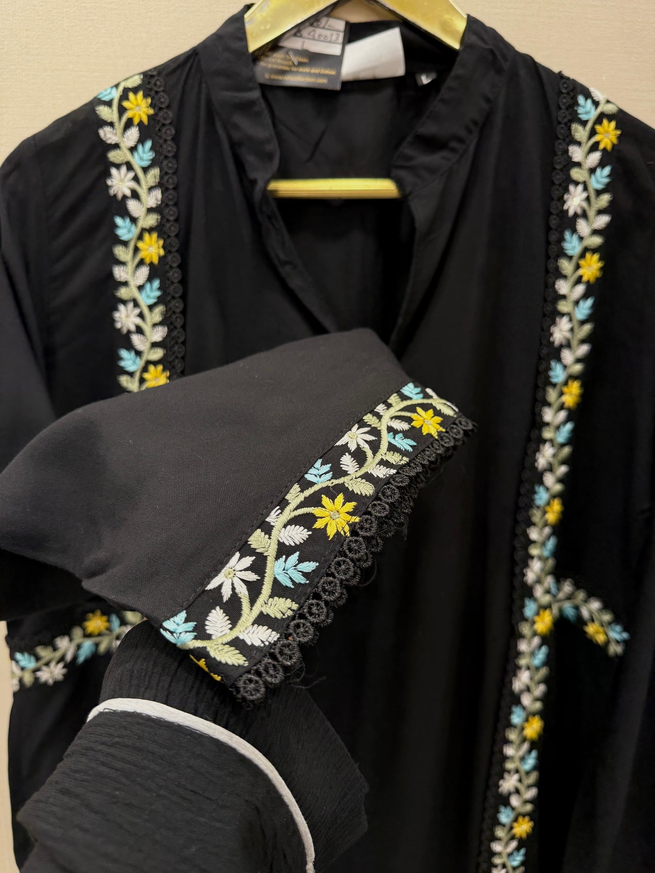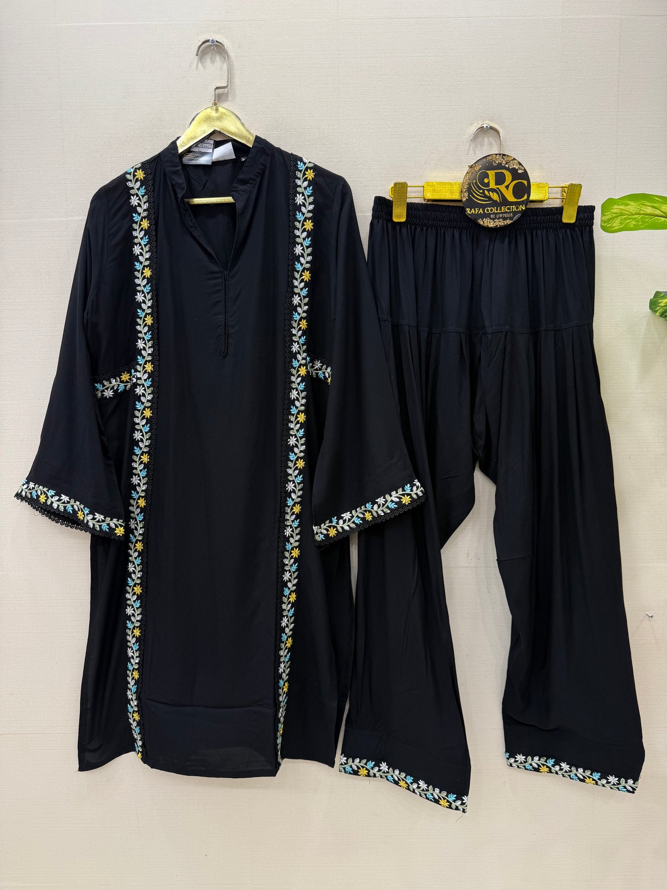 D No:-40013.The is a rayon kurti designed with intricate embroidery and lace work. Rayon, known for its softness and breathability, ensures comfort during wear. The detailed craftsmanship of the embroidery enhances visual appeal, while the lace work adds a touch of elegance, making it suitable for both casual and formal occasions.