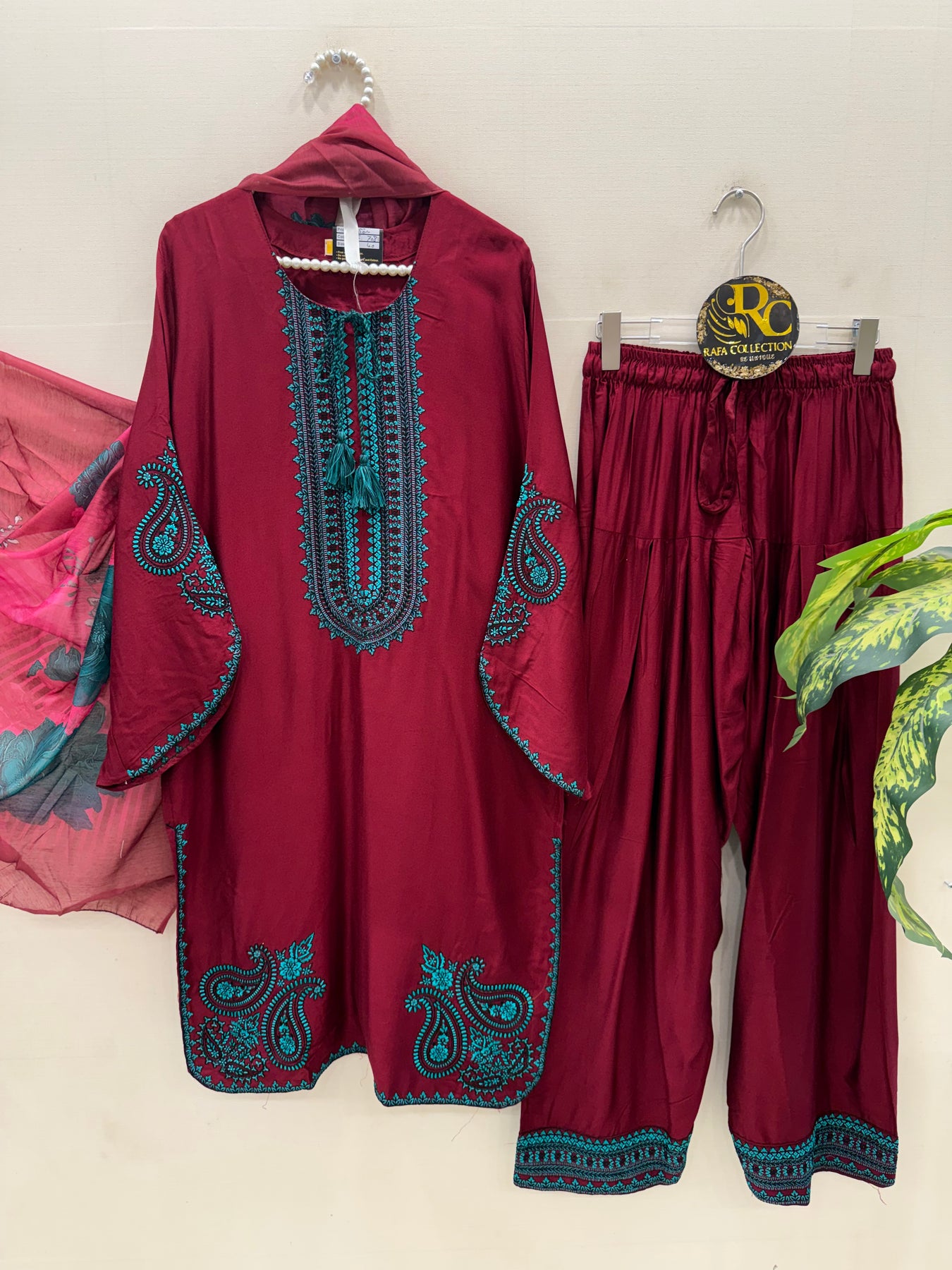 Bottom:-Rayon Farshi Salwar with embroidery work