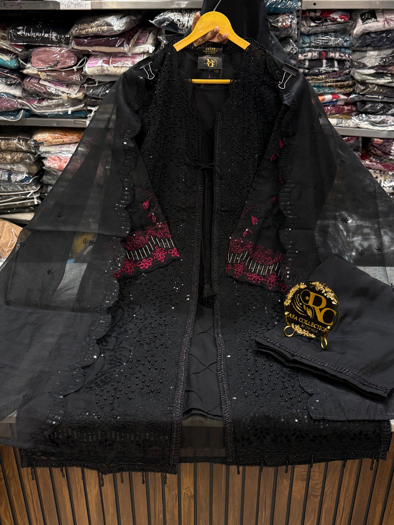 Heavy separate jacket with cutwork embroidery sequence and lace work tassels