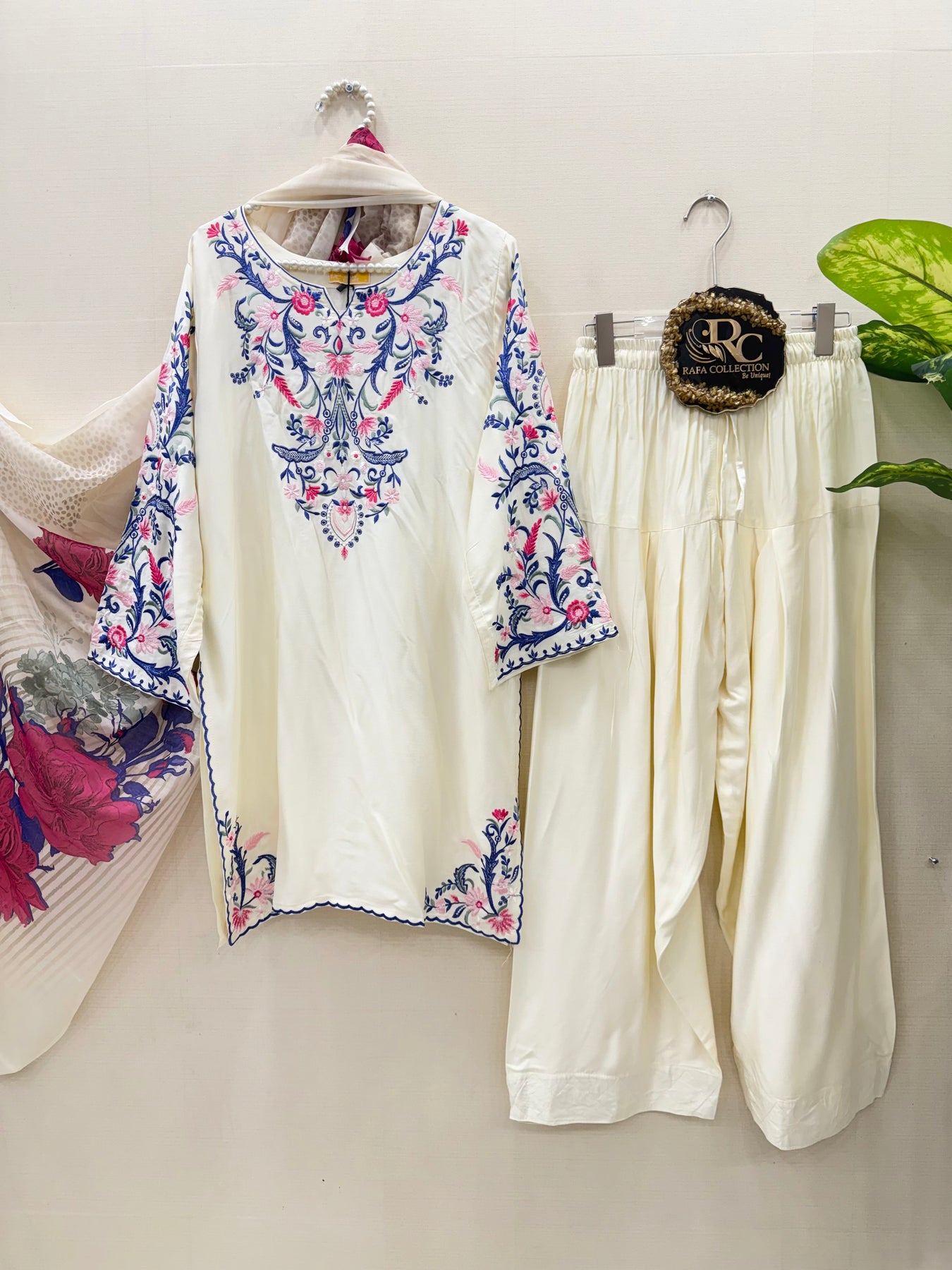 D No:-2817.The Embroidered Farshi Salwar Suits feature a rayon fabric kurti adorned with intricate embroidery. Rayon, known for its breathability and comfort, provides a soft touch against the skin. The detailed embroidery enhances the aesthetic appeal, making it suitable for various occasions, from casual to semi-formal events.