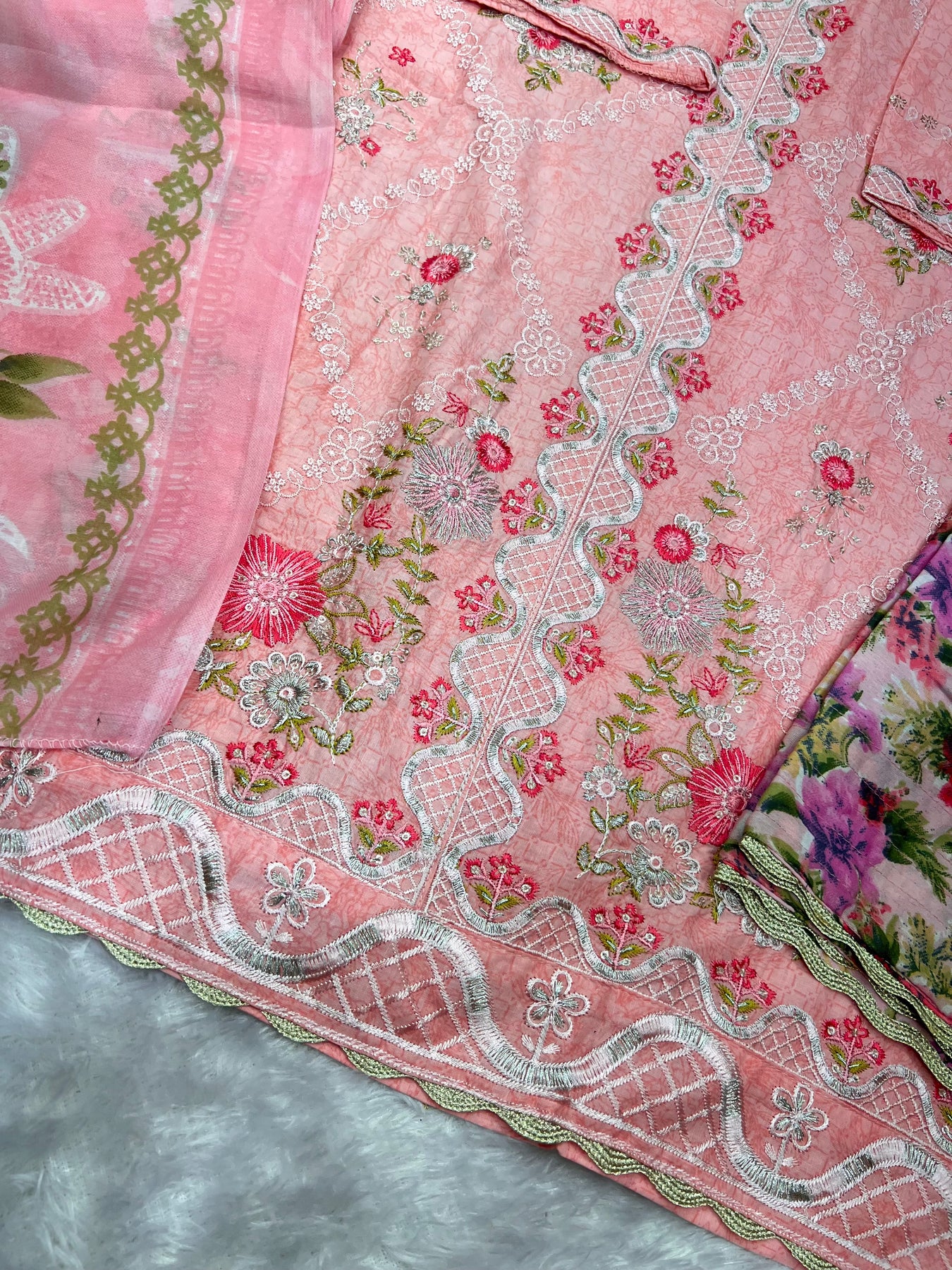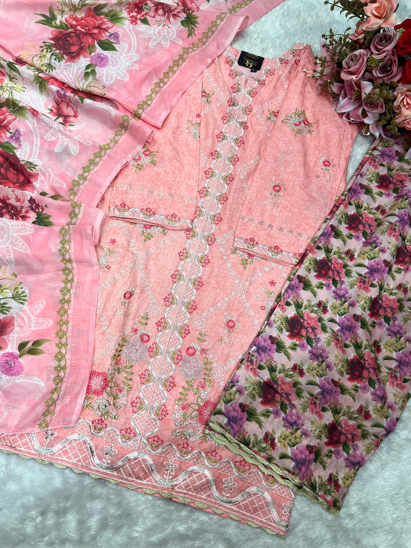 D no :- 2553 Expertly crafted from high-quality cotton, this Pakistani formal outfit (style# ) boasts a striking print and intricate embroidery work. Elevate your wardrobe with this versatile and durable piece, suitable for any occasion.
