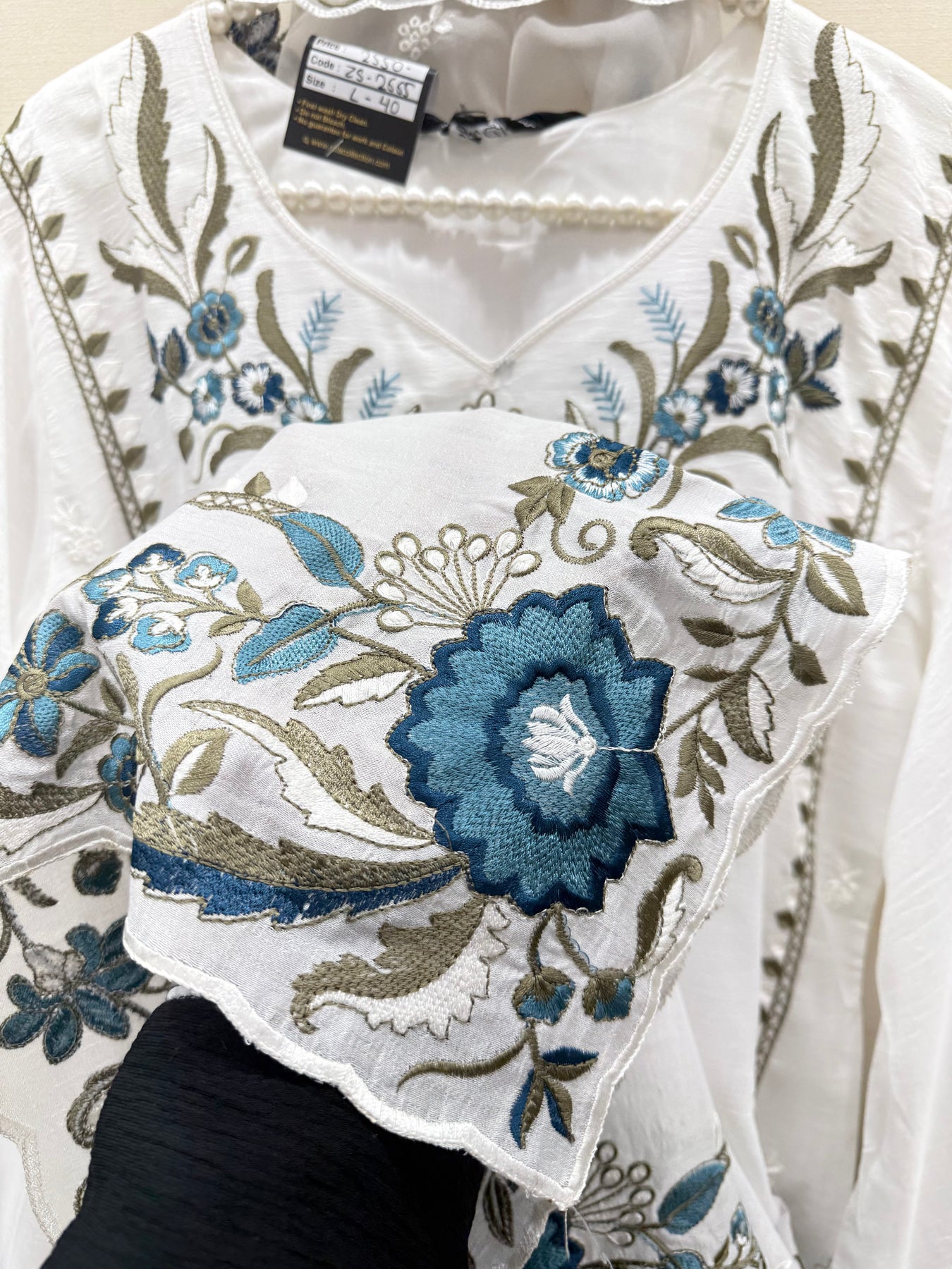 D No:-2665.Upgrade your wardrobe with Pakistani formals . Made from premium georgette, this top features exquisite embroidery work and elegant bell sleeves that elevate your style. Stay comfortable and fashionable with this unique piece that adds a touch of sophistication to any occasion.