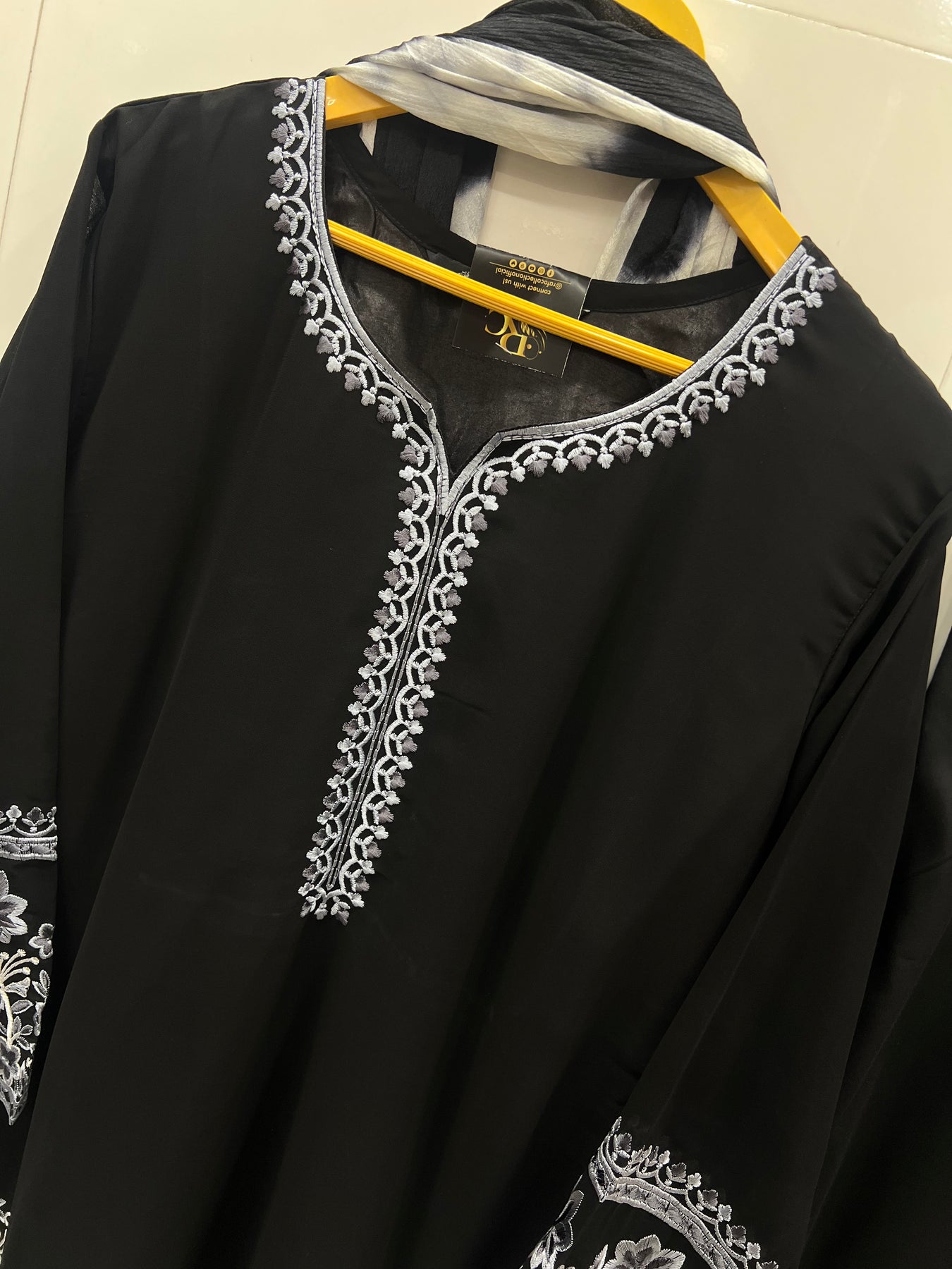 D No:-2800.This Pakistani formals suit features a georgette kurti with intricate embroidery work, adding an elegant touch to your wardrobe. Made with high-quality materials, it offers both comfort and style, making it a perfect choice for formal occasions. Elevate your look with this exquisite suit today.