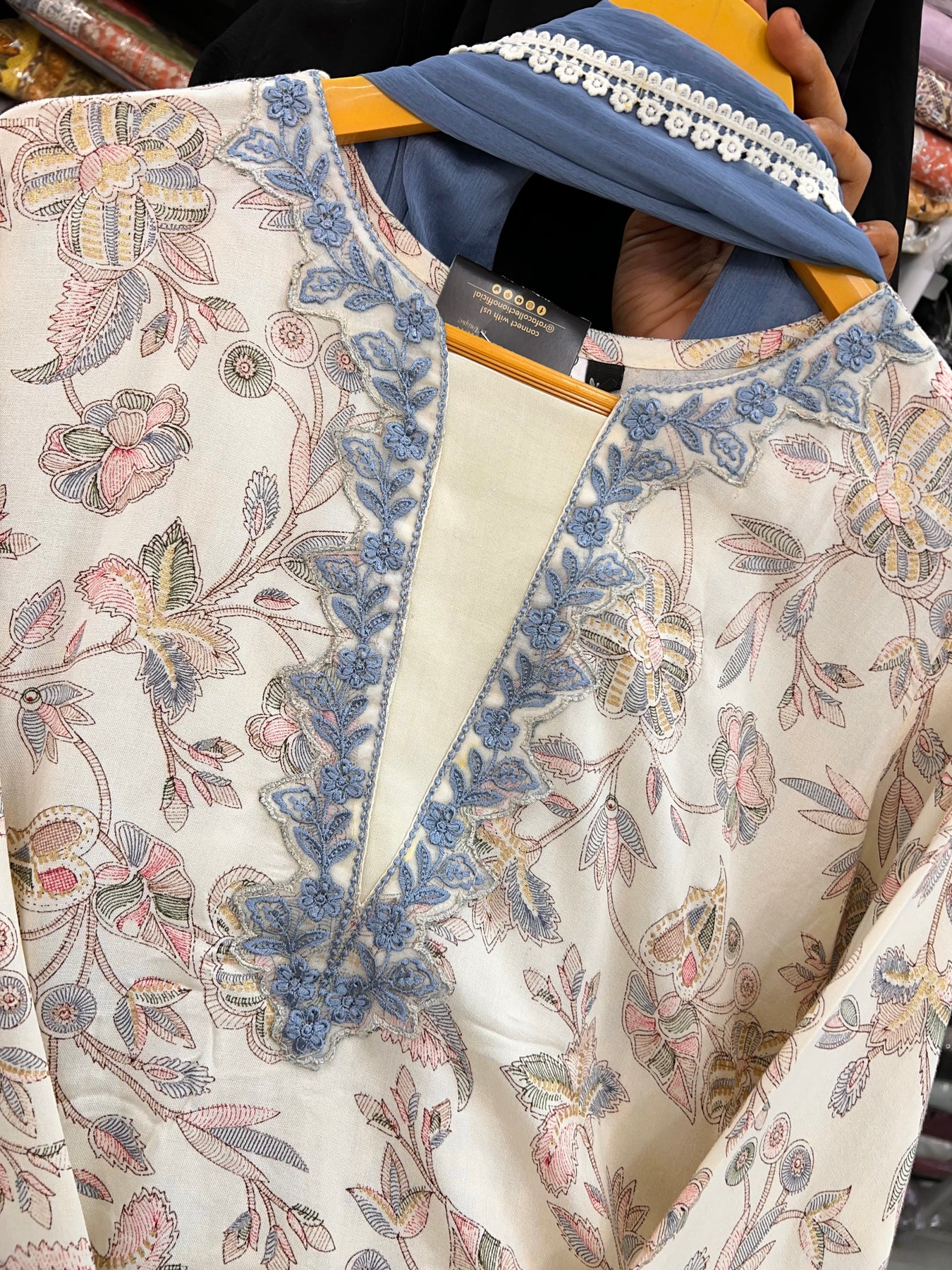 D No:-2807.Enhance your wardrobe with our Pakistani formal suits 2807. Our Maslin kurti features delicate embroidery and cutwork, adding a touch of elegance to any occasion. Made with high-quality materials, this versatile piece will elevate your style and provide comfort. Perfect for any fashion-forward individual.