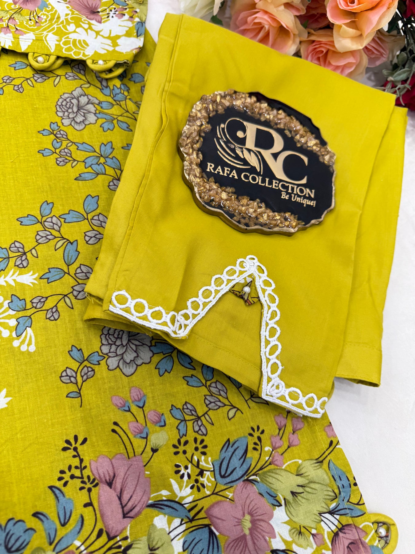 Top:-Cotton printed kurti with embroidery patch and pearl work