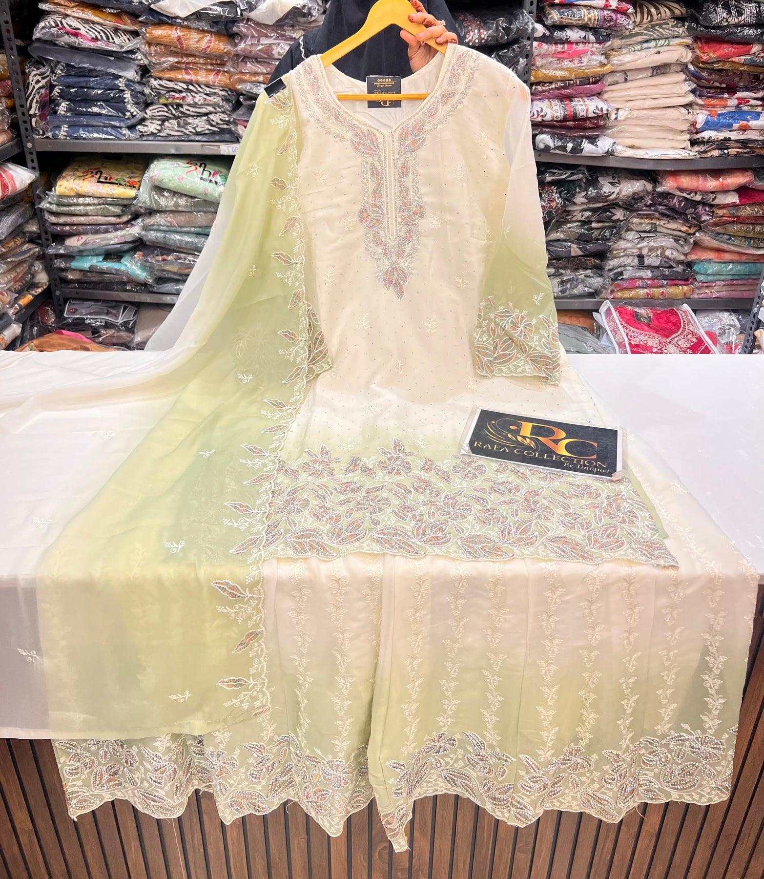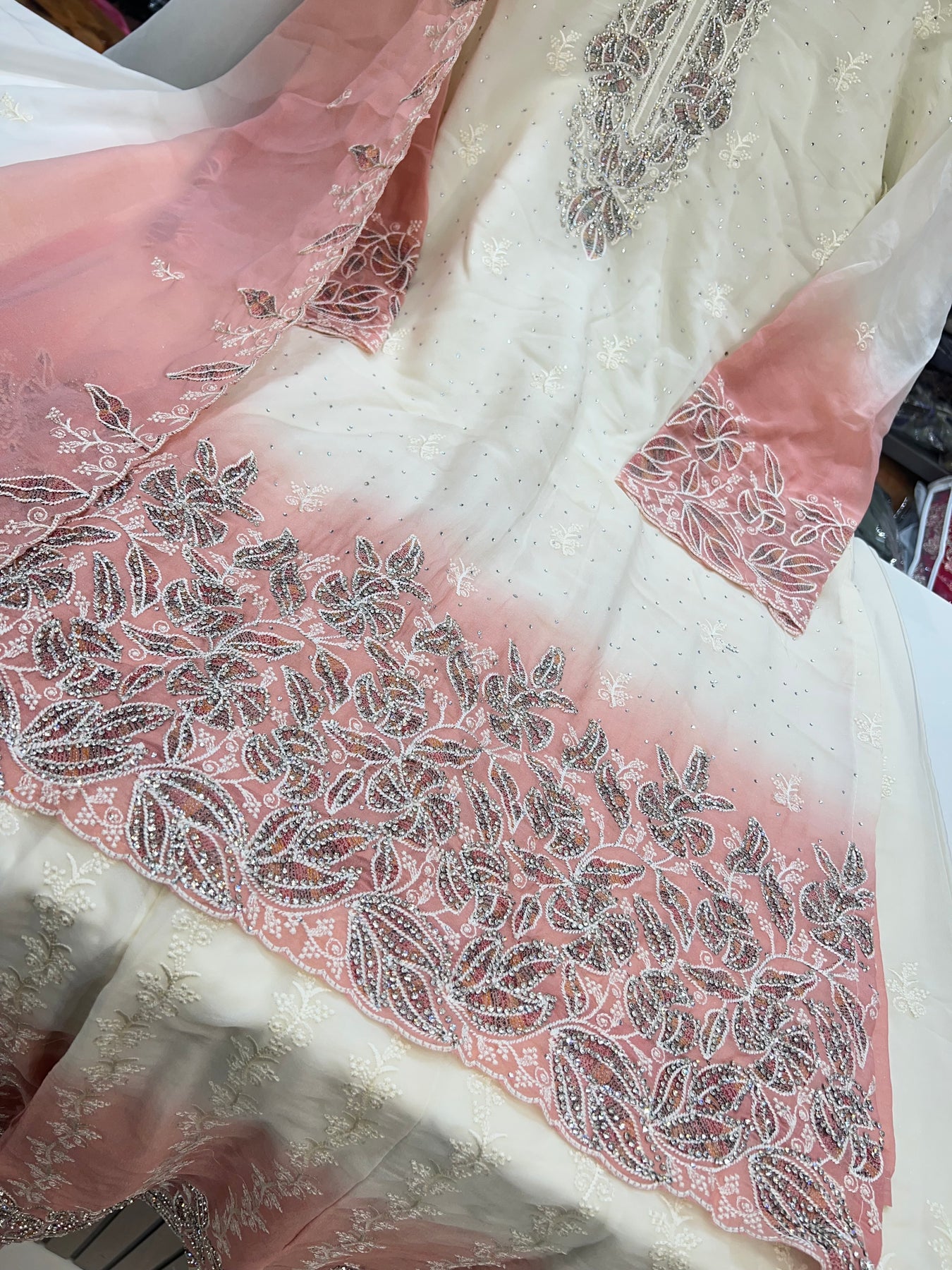 Bottom :- georgette Palazzos embroidery and diamond ย work (ย shantoon inner )