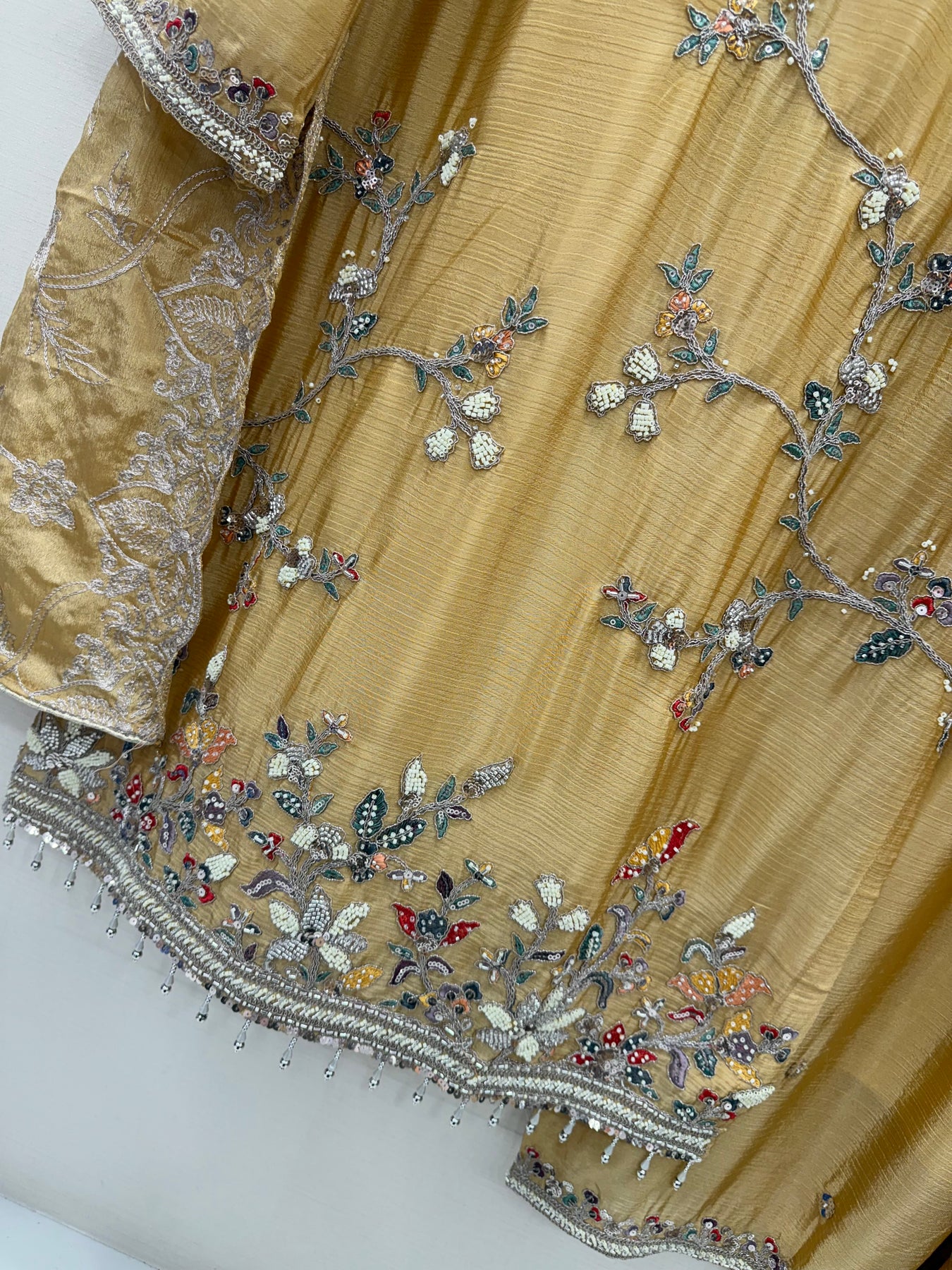 Top:-chinon kurti with embroidery with bits & Khatli work