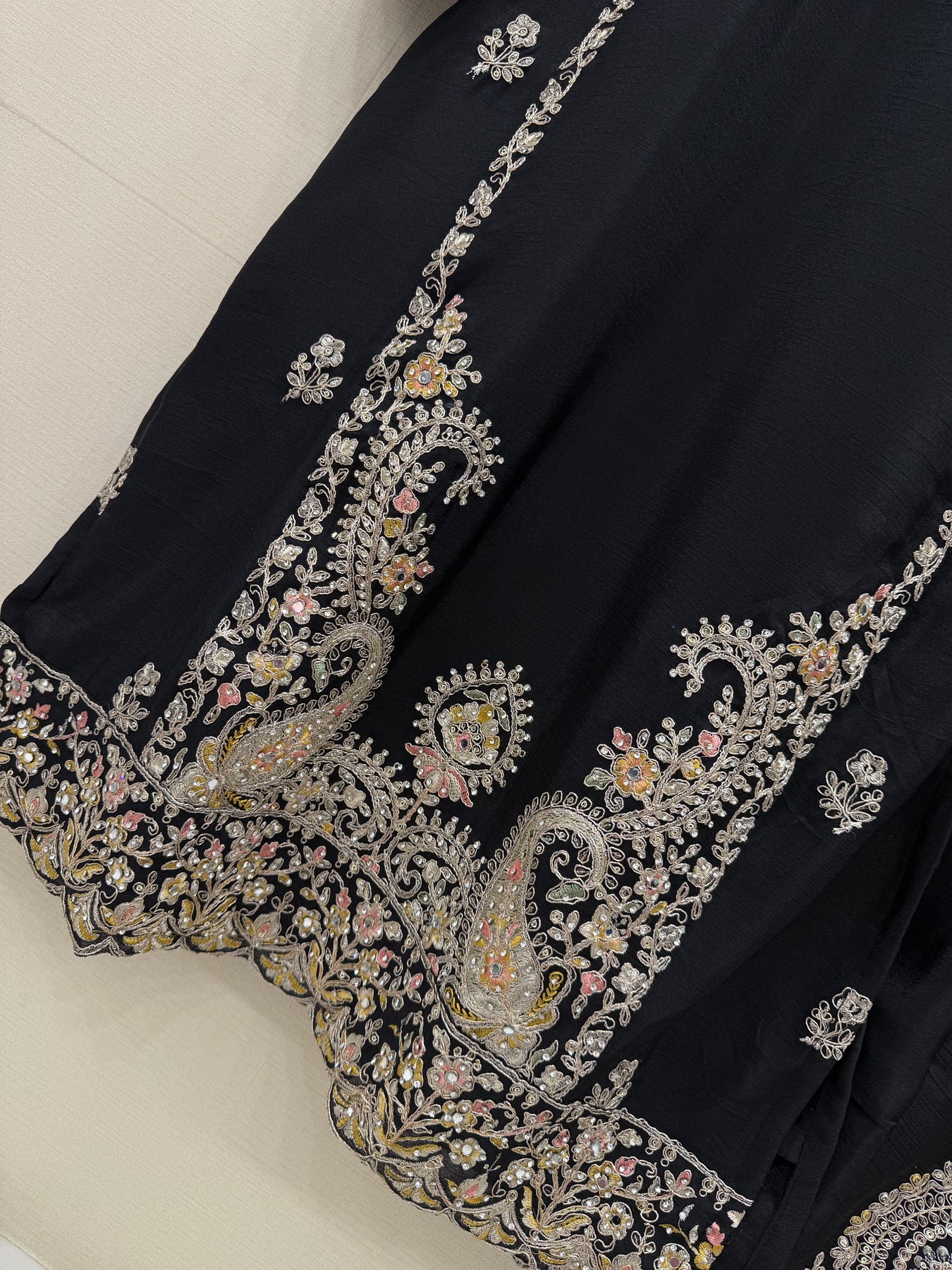 Top:-Chinon heavy embroidery work with zarkan and mirror work